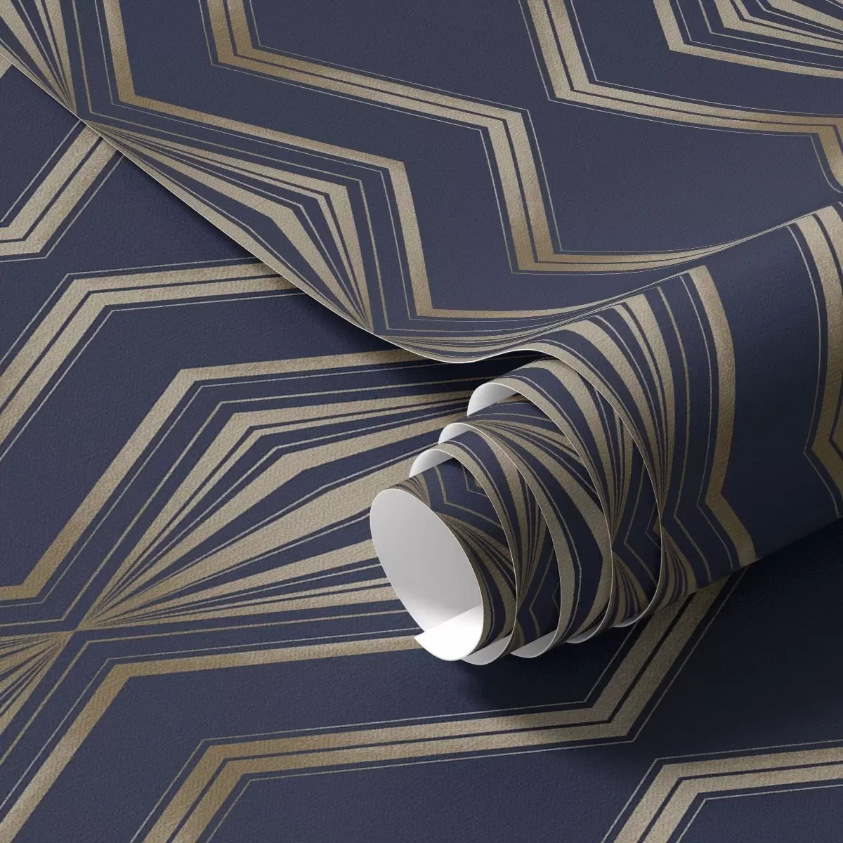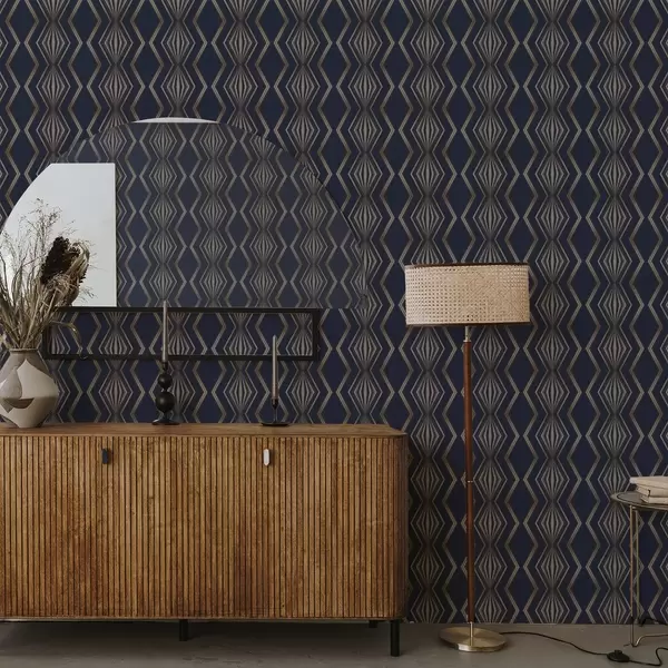 Papel tapiz Fondo azul oscuro con rombos geométricos y zigzags. Nr. a00974v2
