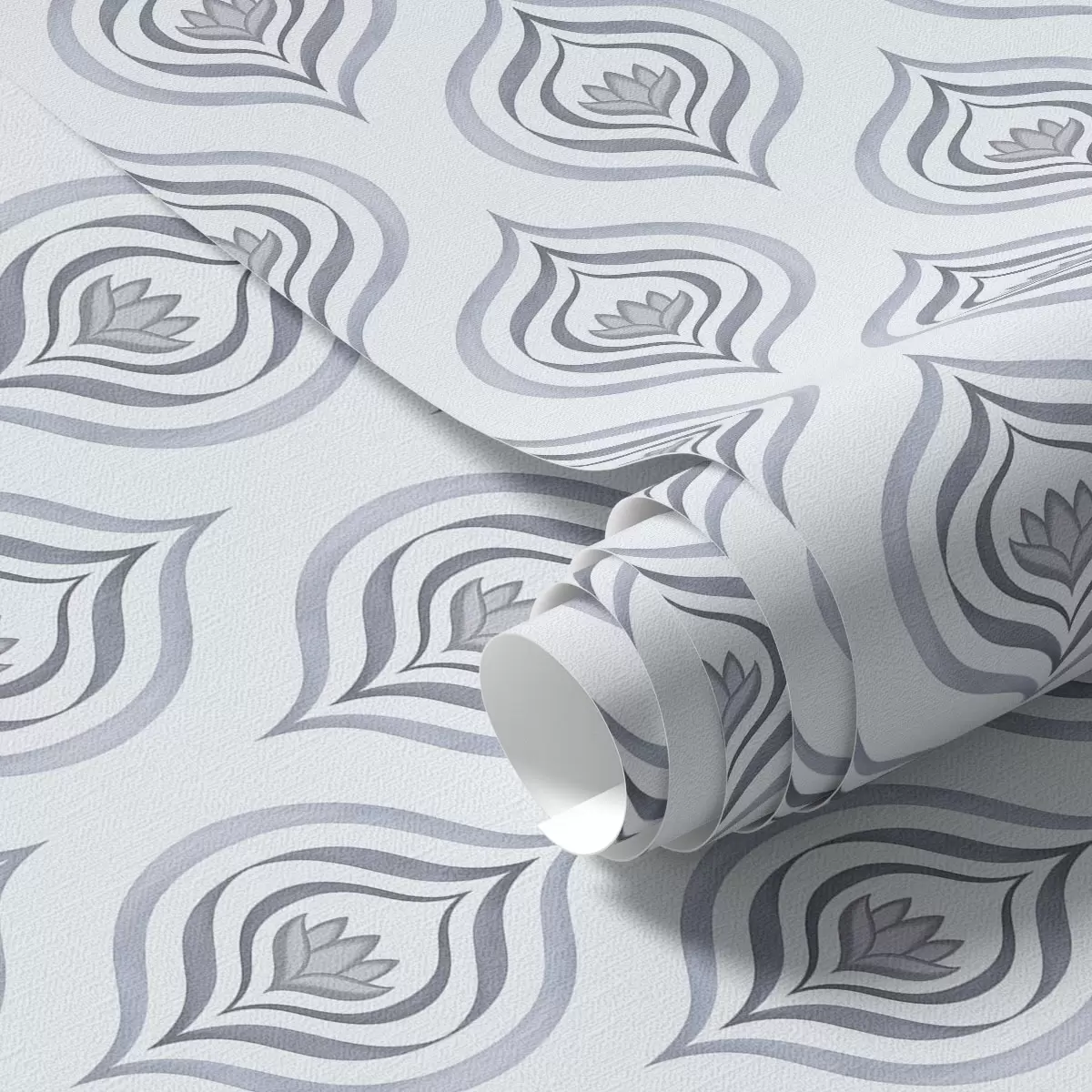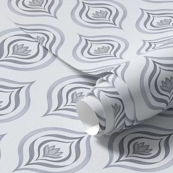 Papel tapiz Motivo de gota con una flor en tonos gris azulados. Nr. a00977v3
