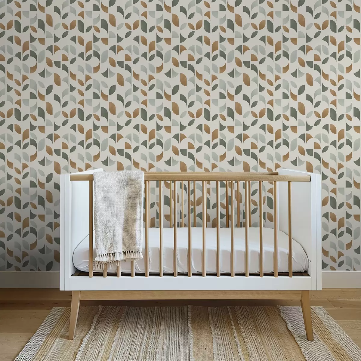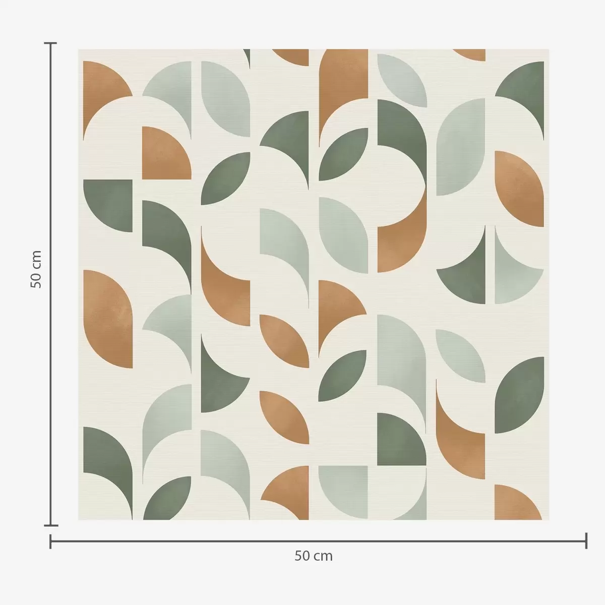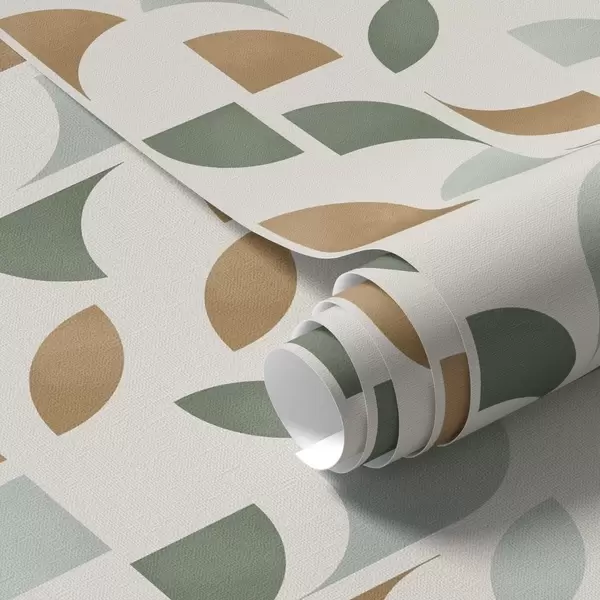 Papel tapiz Columnas verticales de medias lunas y hojas, verde-terracota Nr. a00986
