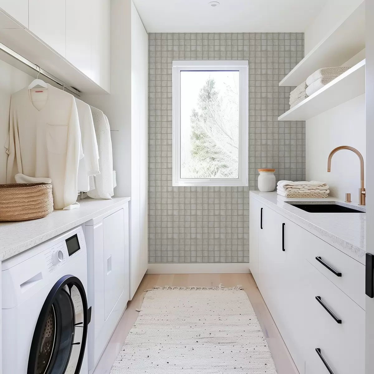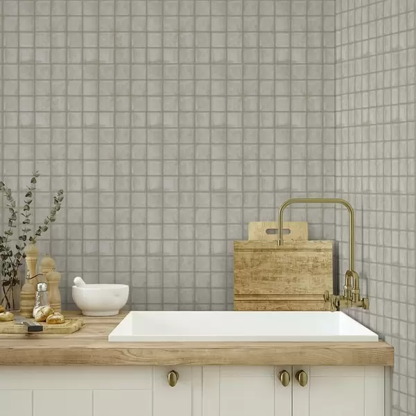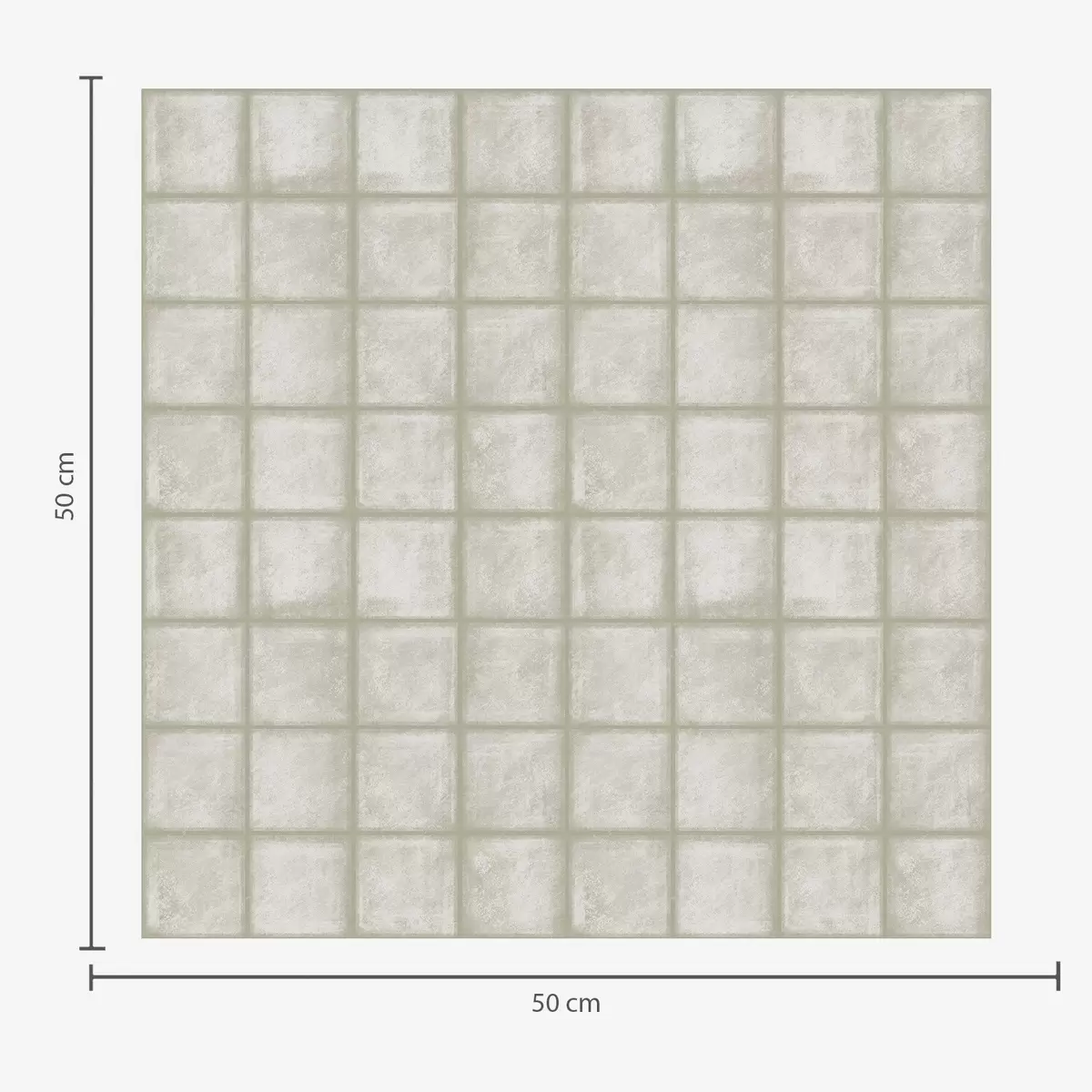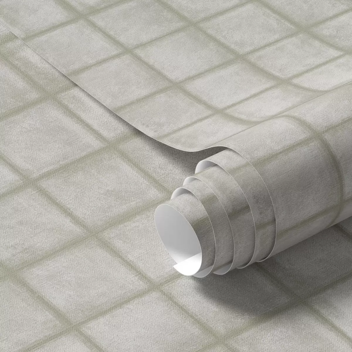 Papel tapiz Imitación de baldosas cuadradas en una suave paleta de colores gris verdosos. Nr. a00988
