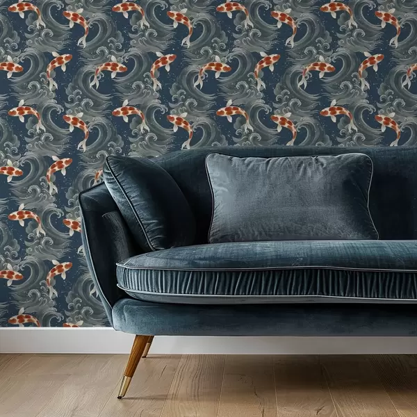 Papel tapiz Peces koi nadando entre espectaculares olas oceánicas Nr. a01019