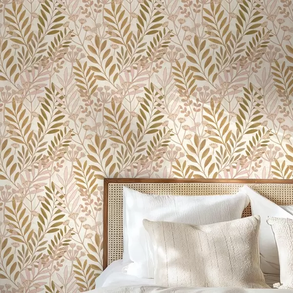 Papel tapiz Diseño botánico ligero con delicadas hojas en tonos rosa y avena Nr. a01020v1