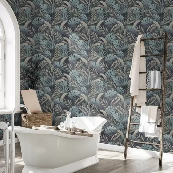 Papel tapiz Follaje tropical en tonos azul verdosos fríos Nr. a01035