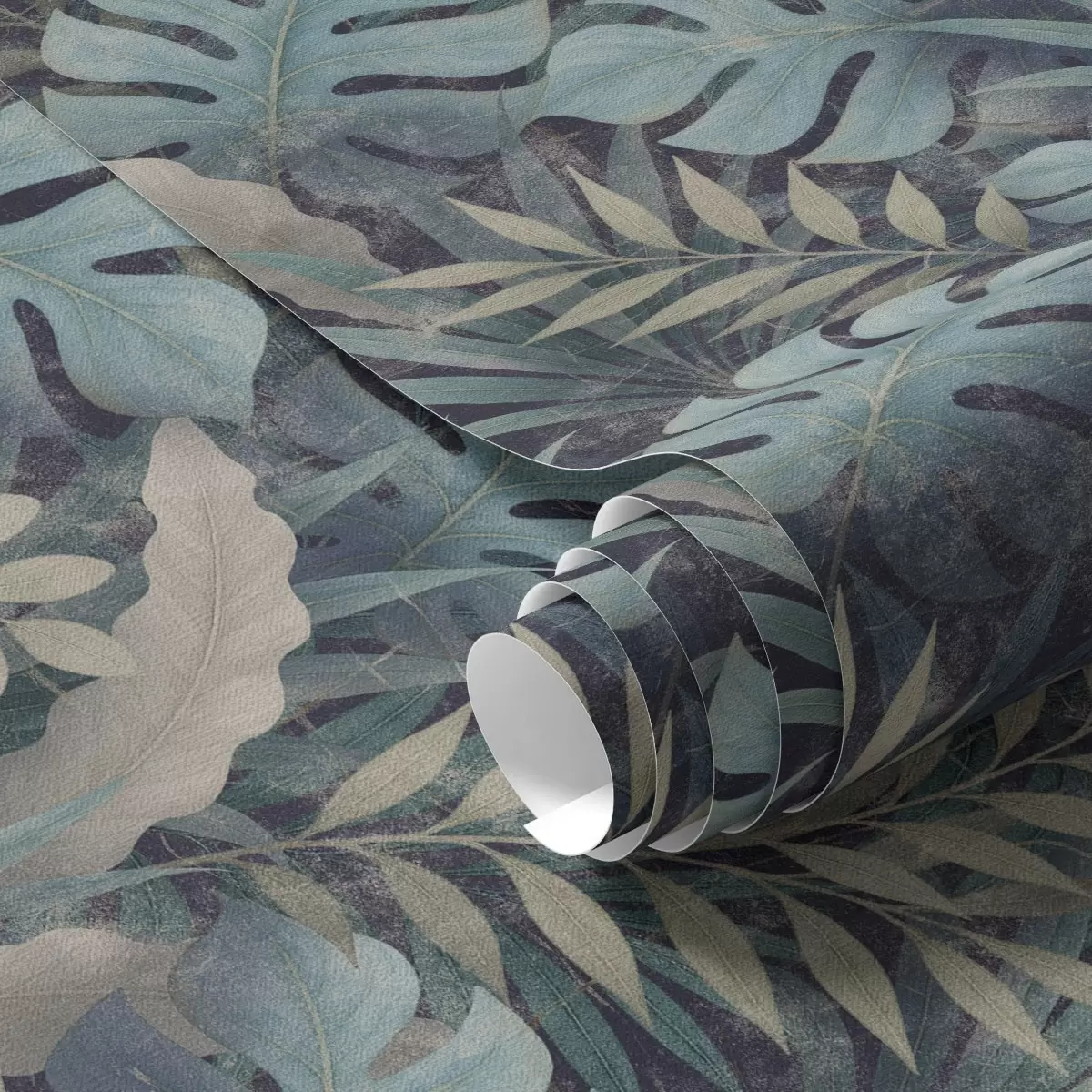 Papel tapiz Follaje tropical en tonos azul verdosos fríos Nr. a01035
