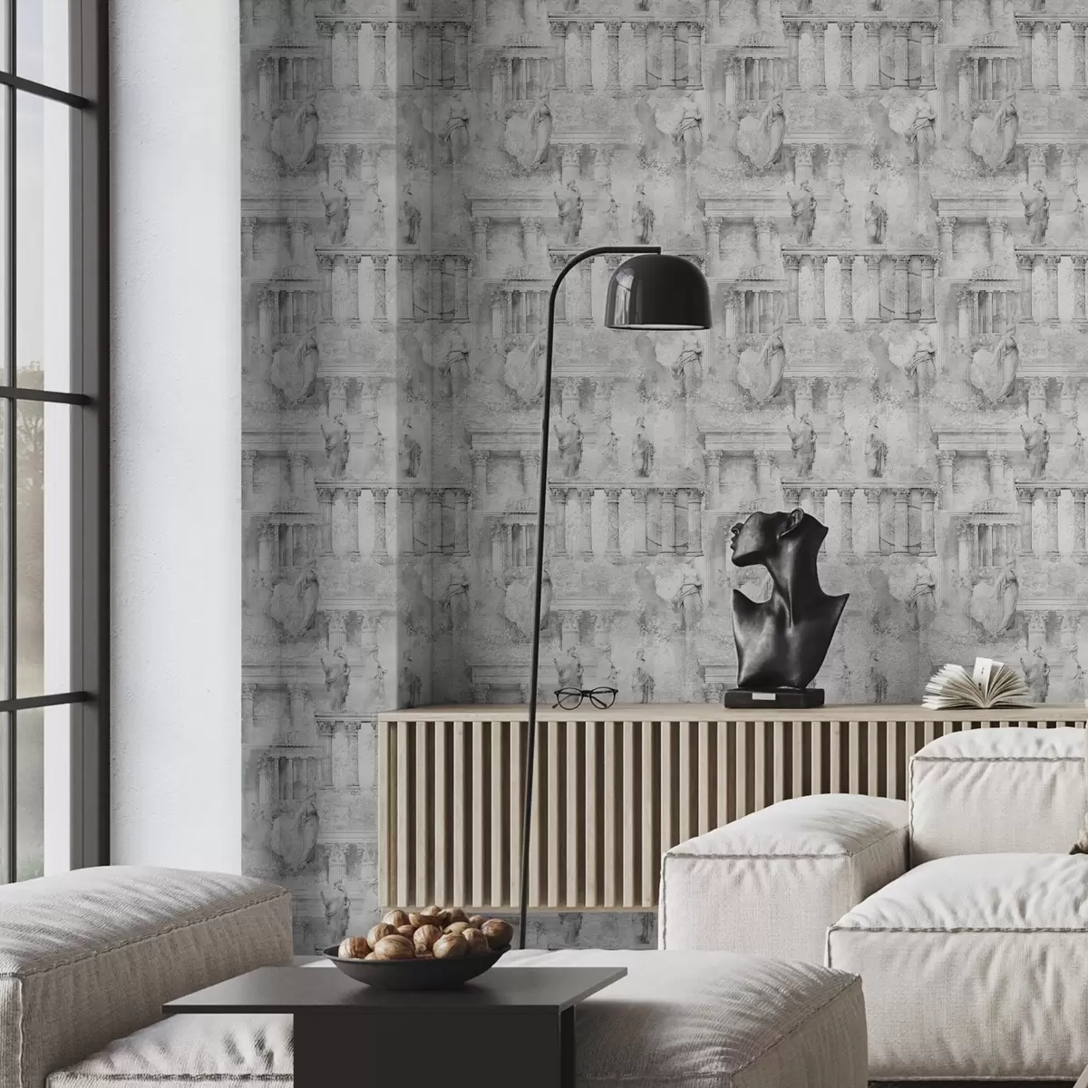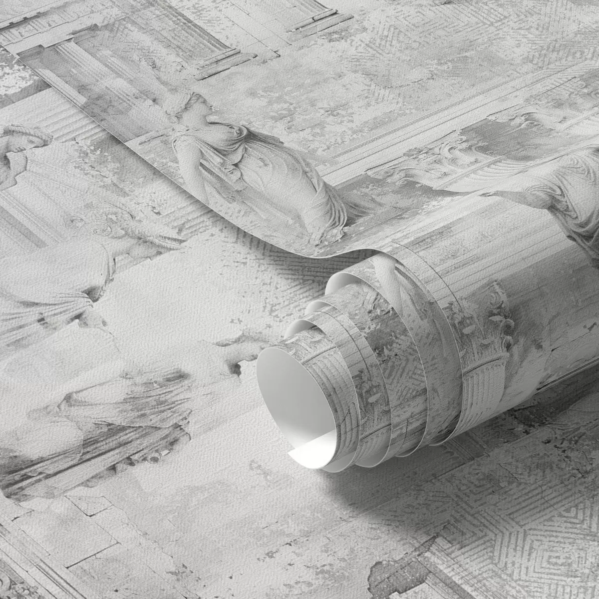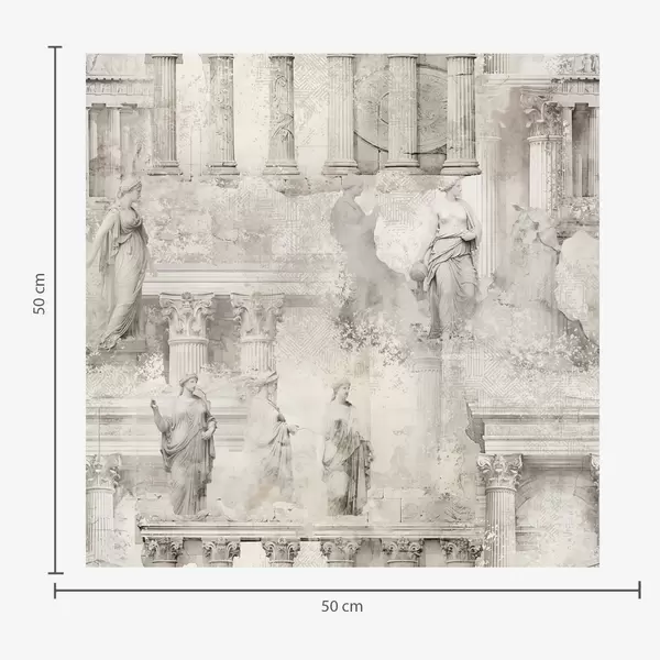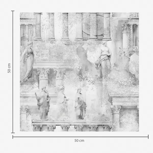 Papel tapiz Estatuas y columnas clásicas en tonos grises descoloridos. Nr. a01041v1