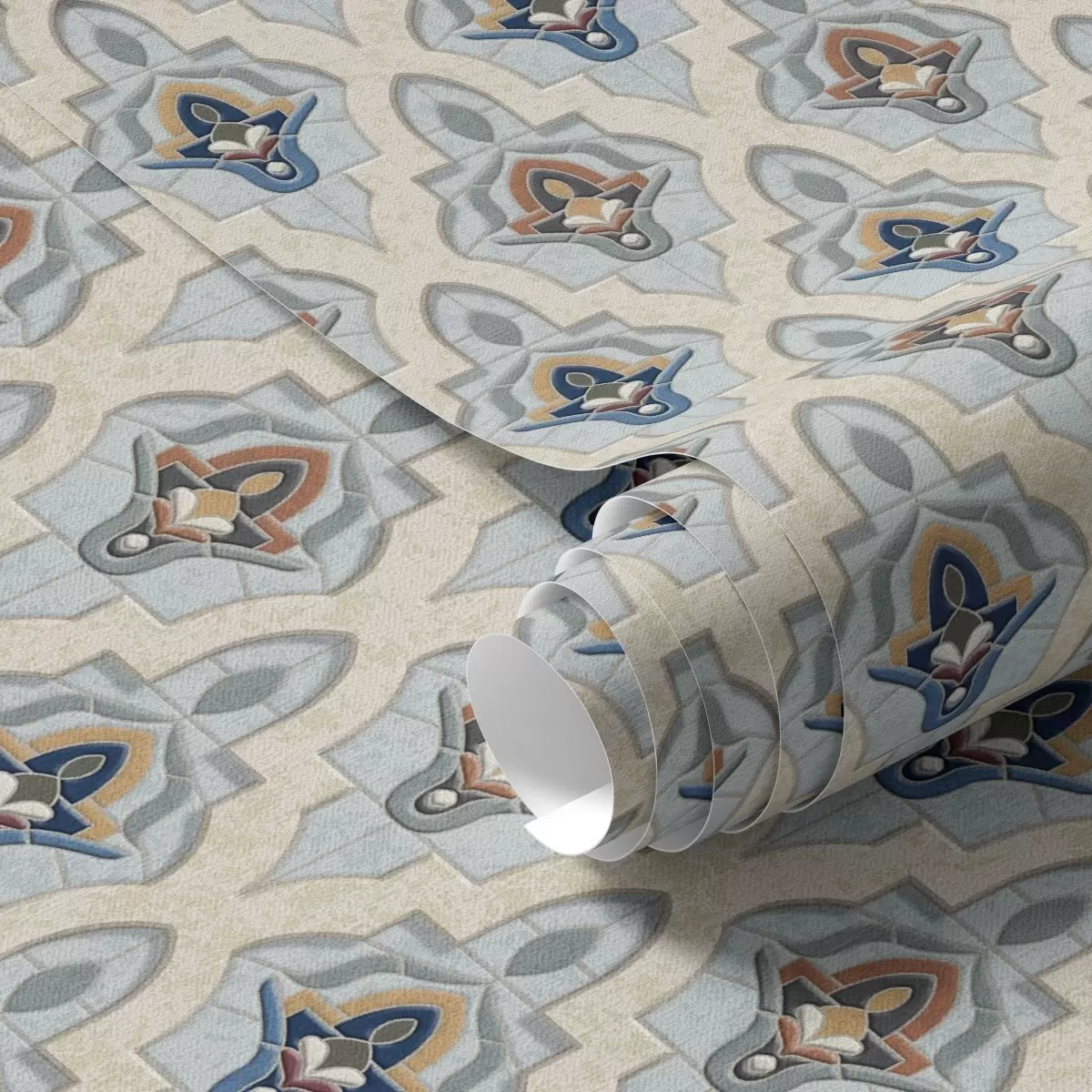 Papel tapiz Patrón oriental de azulejos pequeños en una paleta de colores azul y arena. Nr. a01044