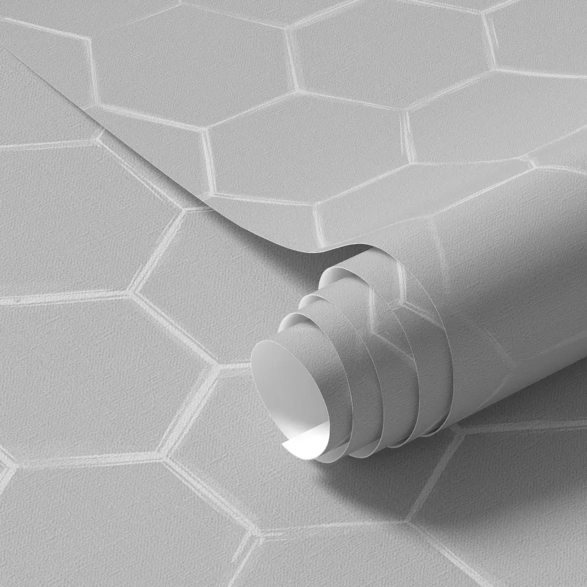 Papel tapiz Hexágonos tridimensionales de color gris claro con sombras suaves. Nr. a01059v1