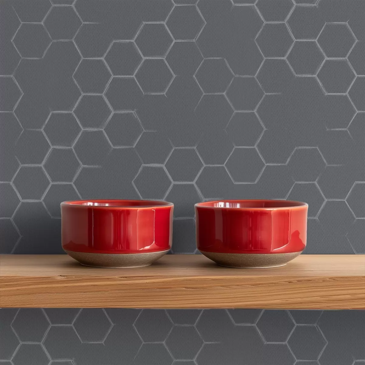 Papel tapiz Patrón de panal de grafito oscuro con profundidad Nr. a01061v1