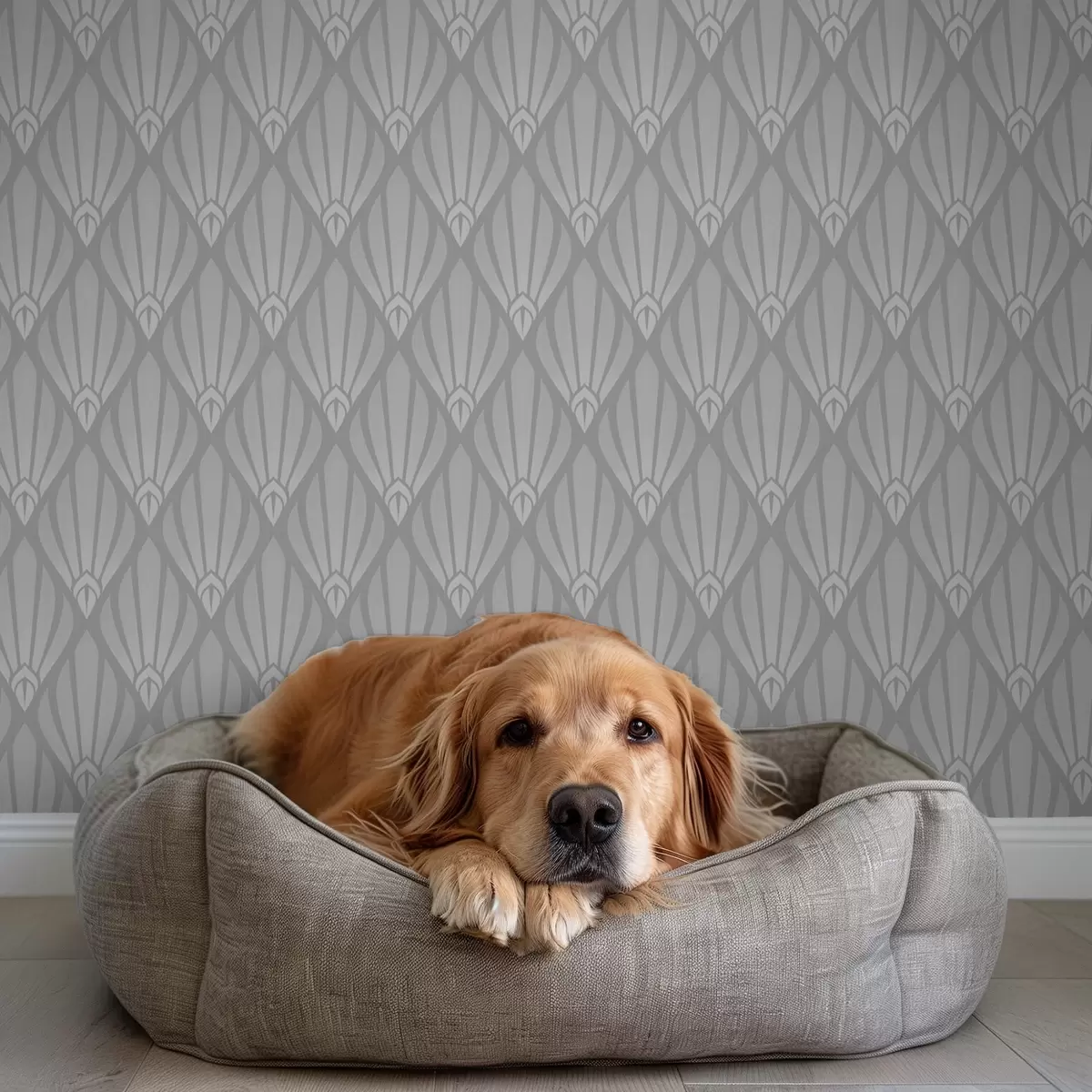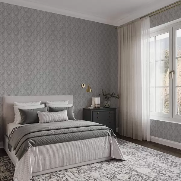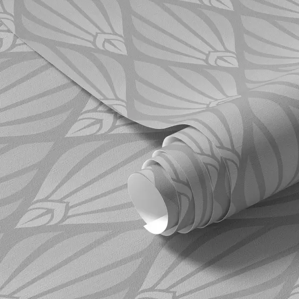 Papel tapiz Art Déco gris con formas en forma de abanico Nr. a01064