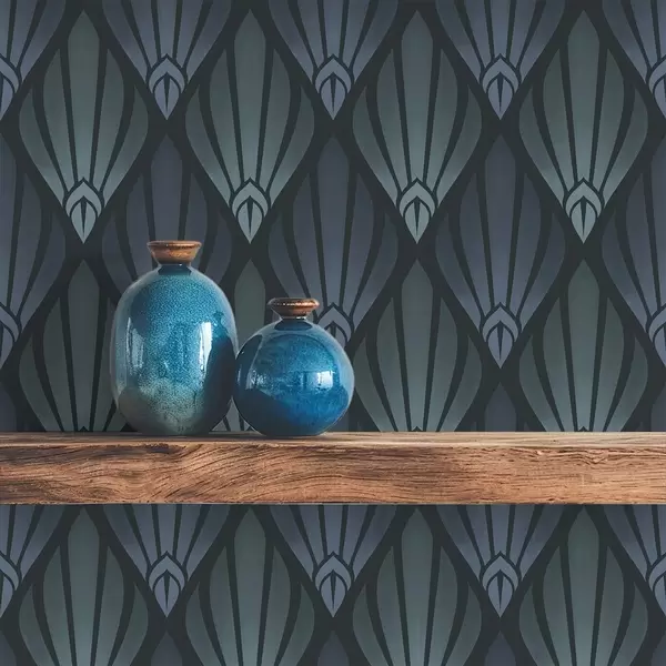 Papel tapiz Art Déco azul grisáceo con formas en forma de abanico Nr. a01064v3