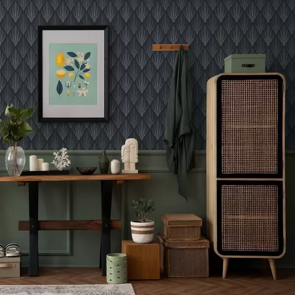 Papel tapiz Art Déco azul grisáceo con formas en forma de abanico Nr. a01064v3
