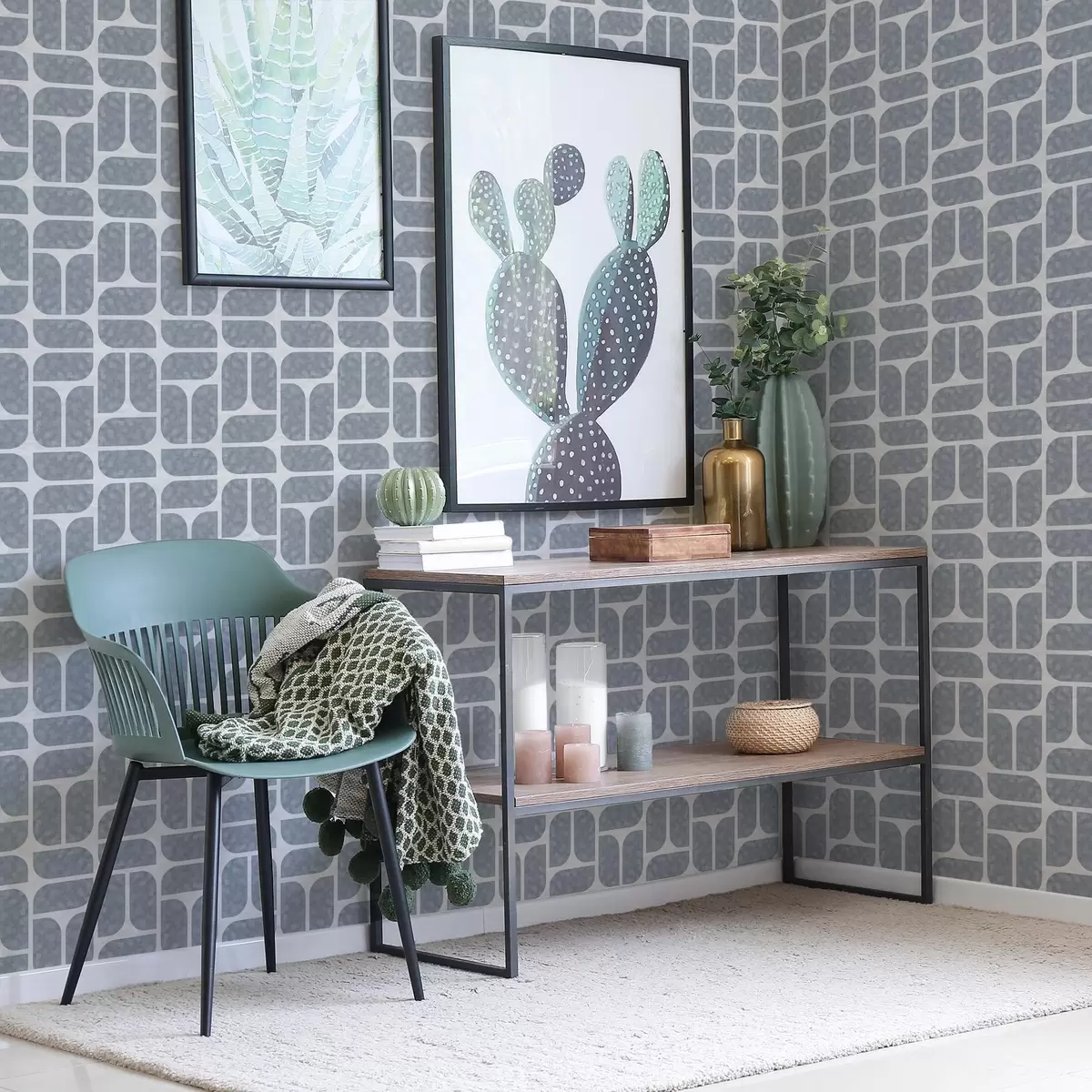 Papel tapiz Mosaico gris alternando formas redondeadas y rectangulares. Nr. a01069