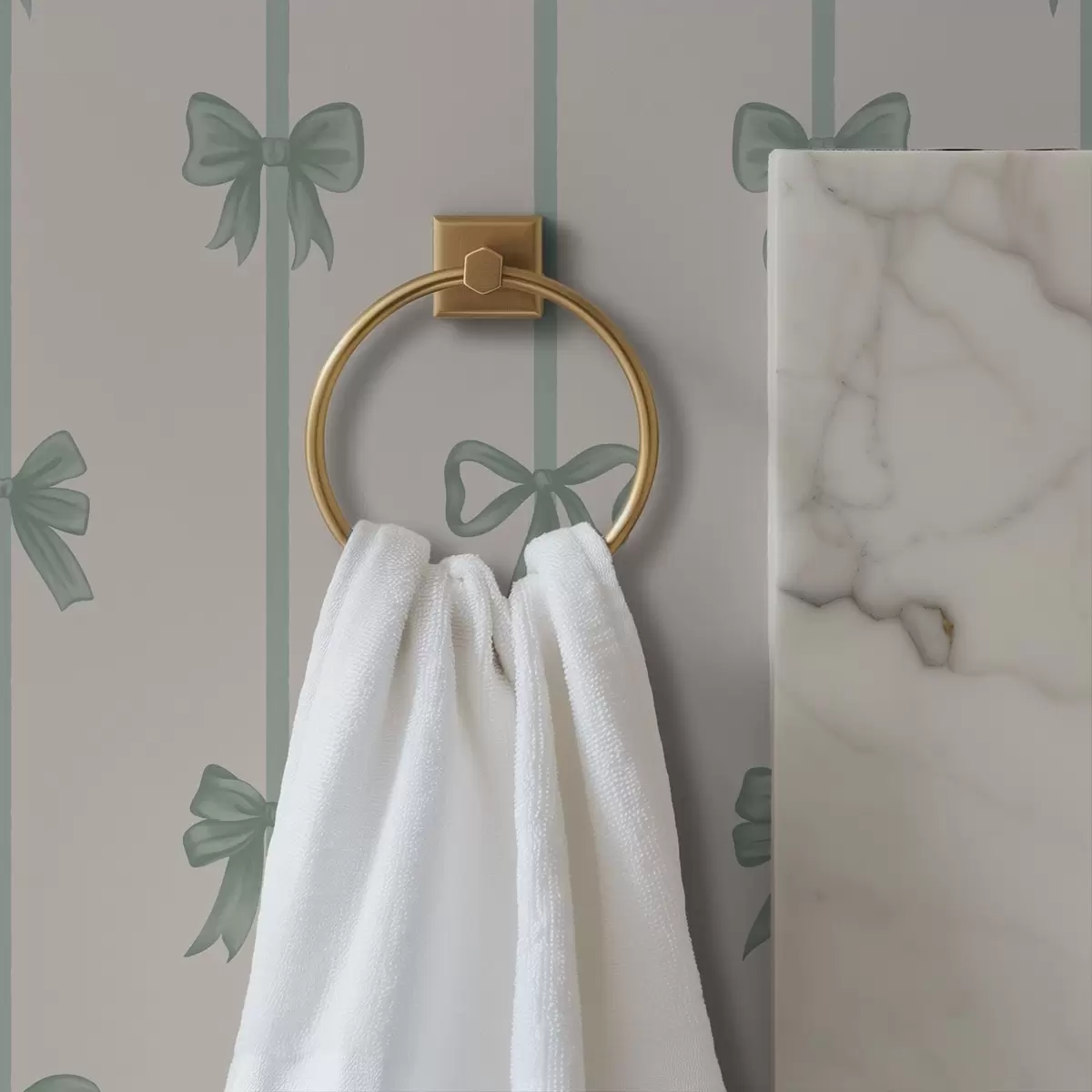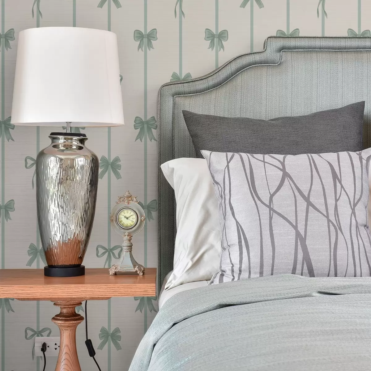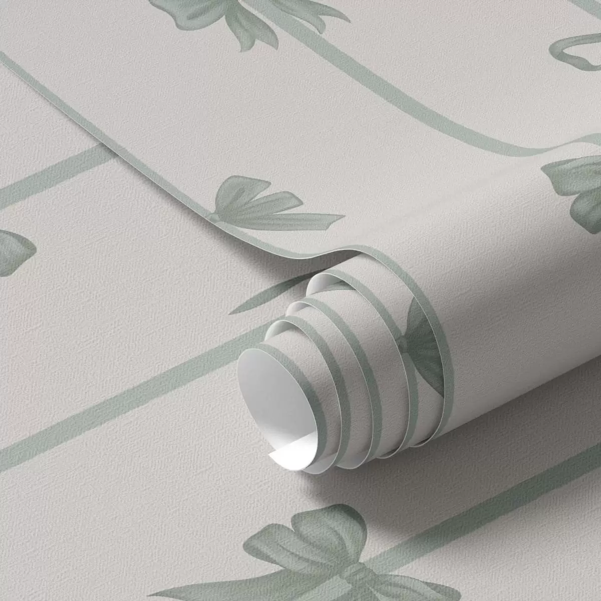 Papel tapiz Lazos verdes con cintas sobre fondo beige Nr. a01074v1