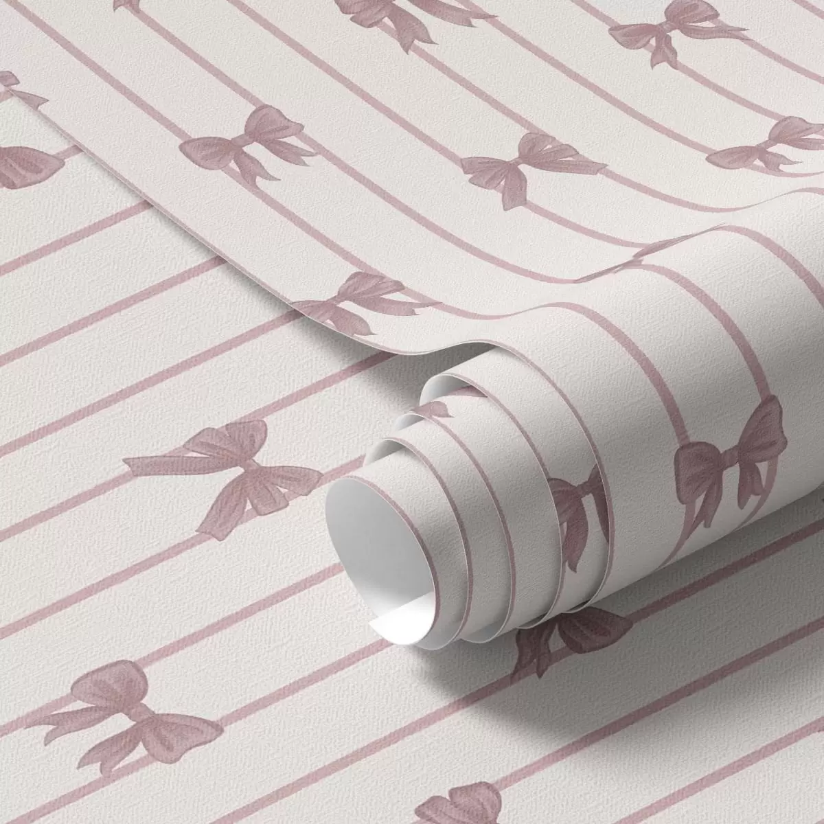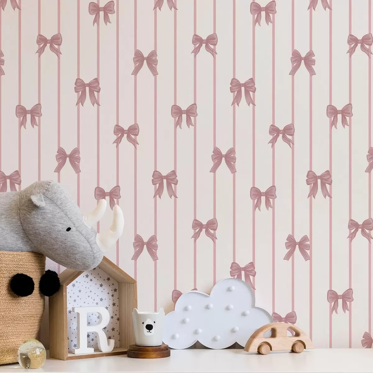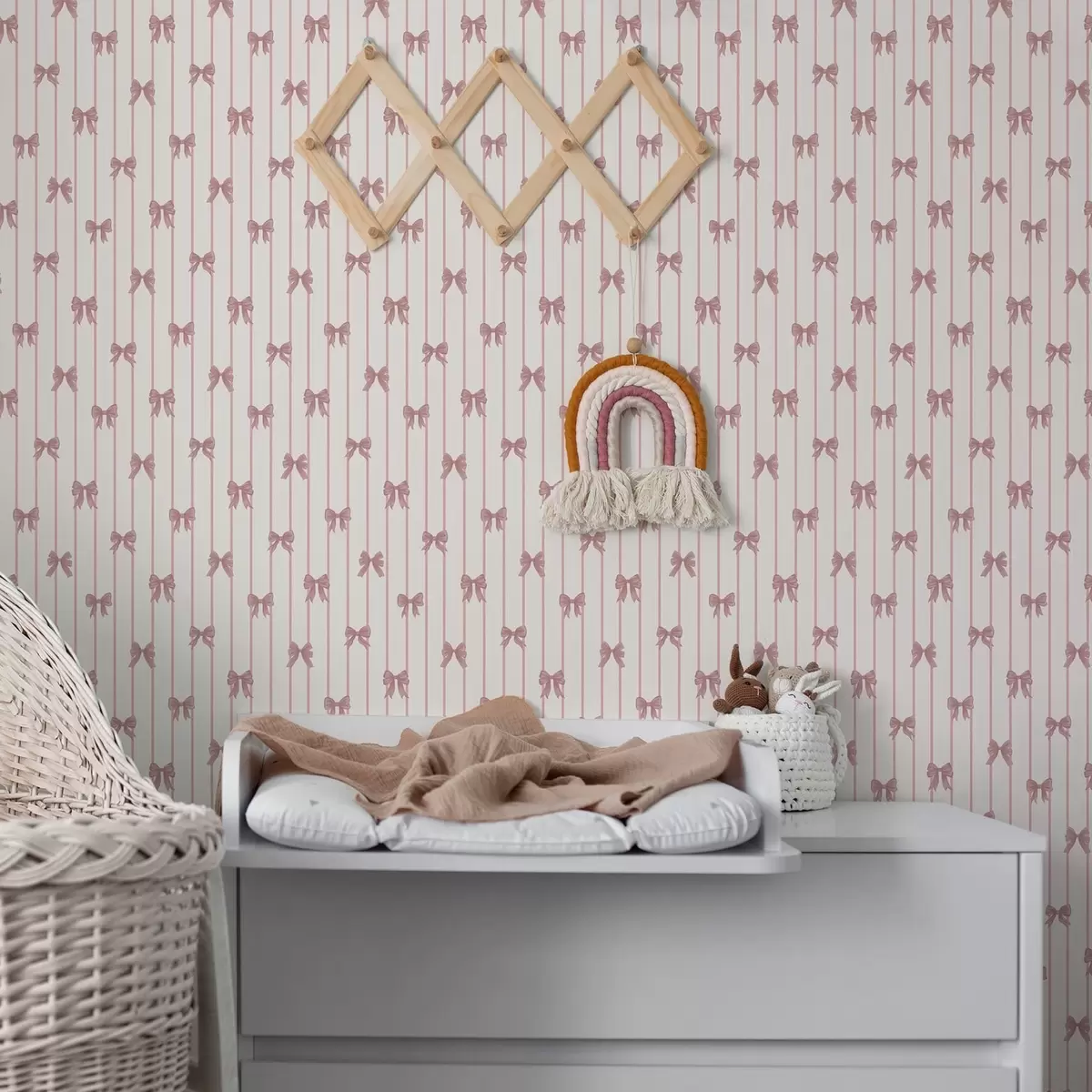 Papel tapiz Pequeños lazos rosas en rayas verticales Nr. a01076