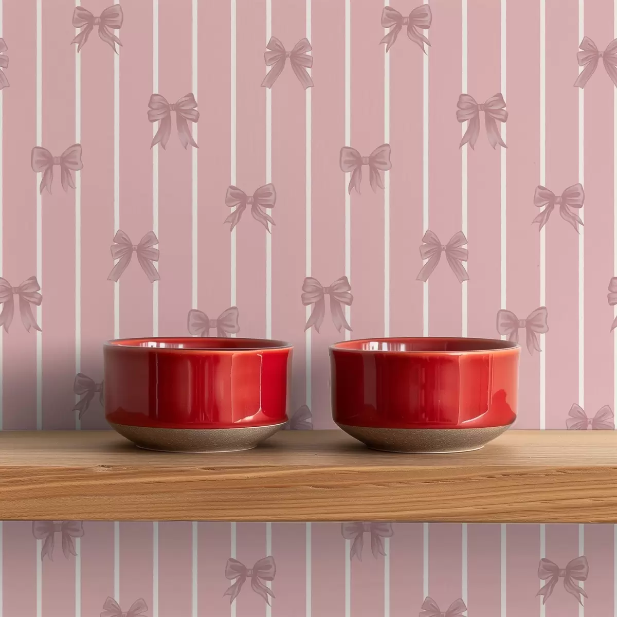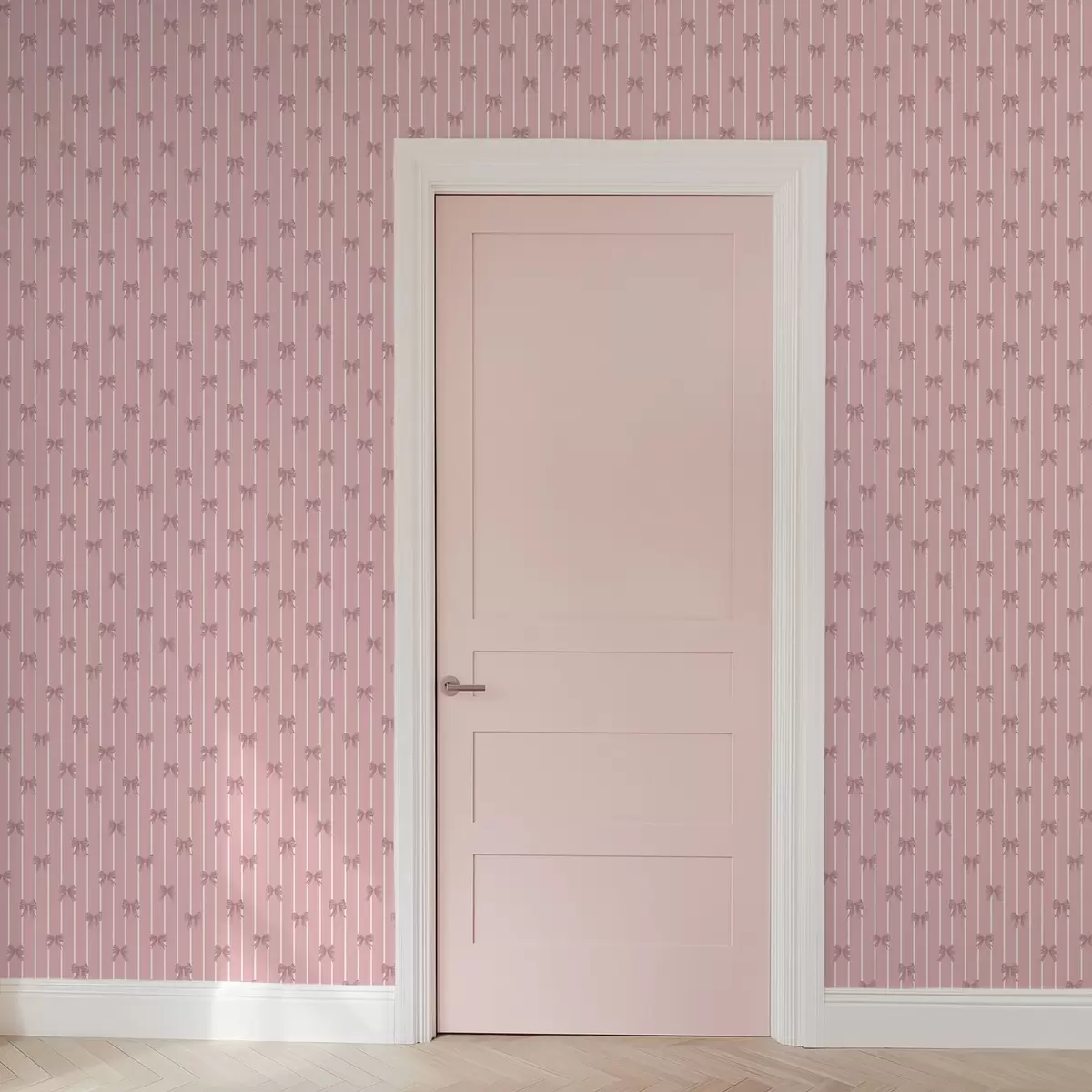 Papel tapiz Pequeños lazos rosas sobre un fondo a rayas rosas Nr. a01076v1