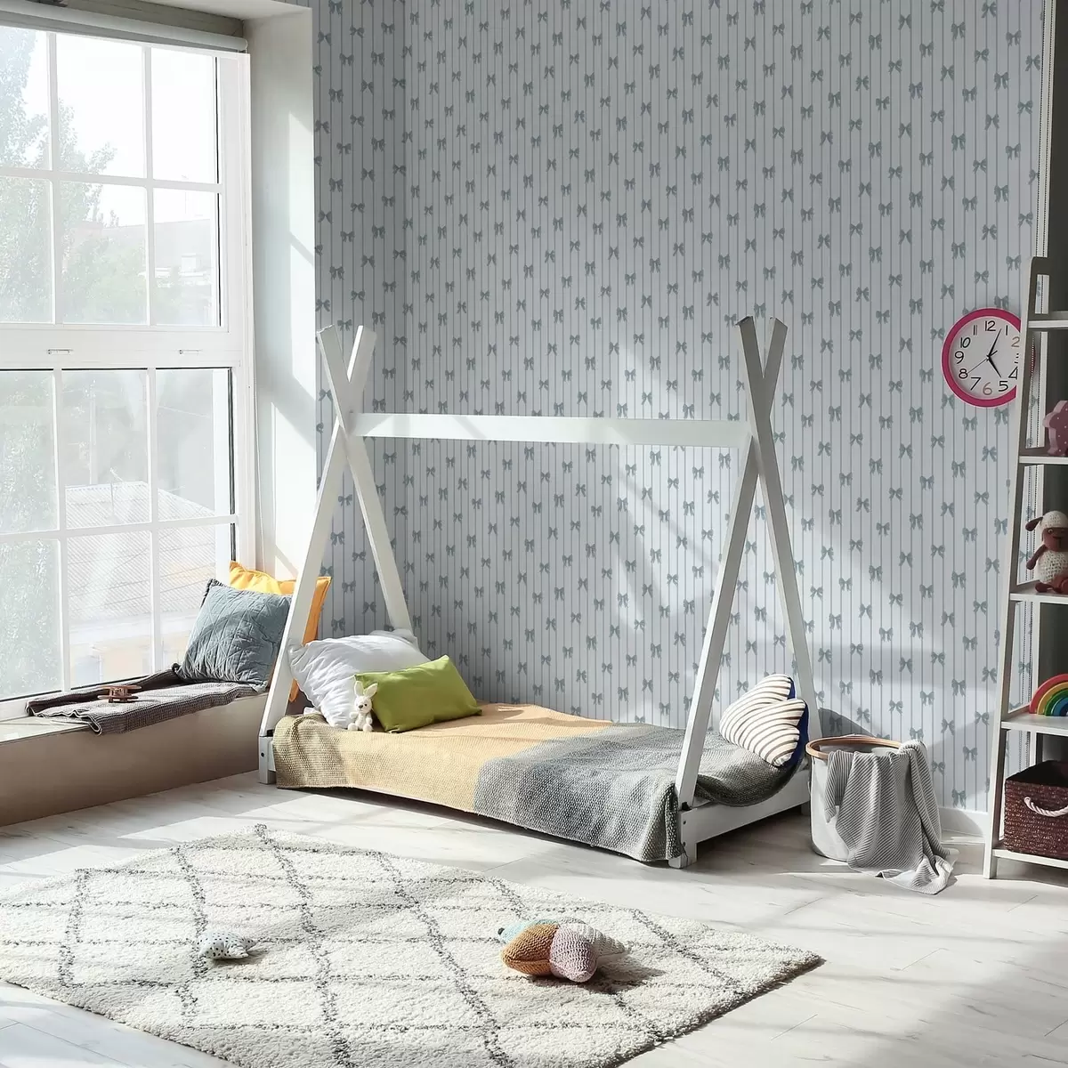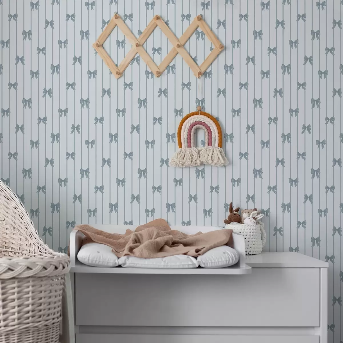 Papel tapiz Diseño de rayas claras con cintas y lazos Nr. a01076v3