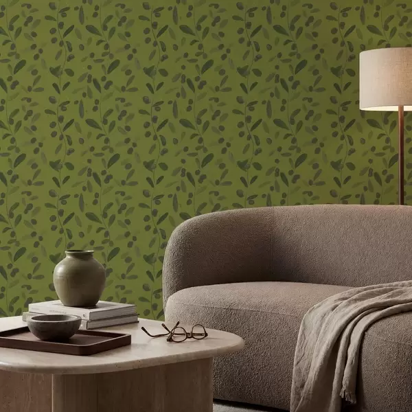 Papel tapiz Ramas verdes con hojas y bayas en olivo Nr. a01113