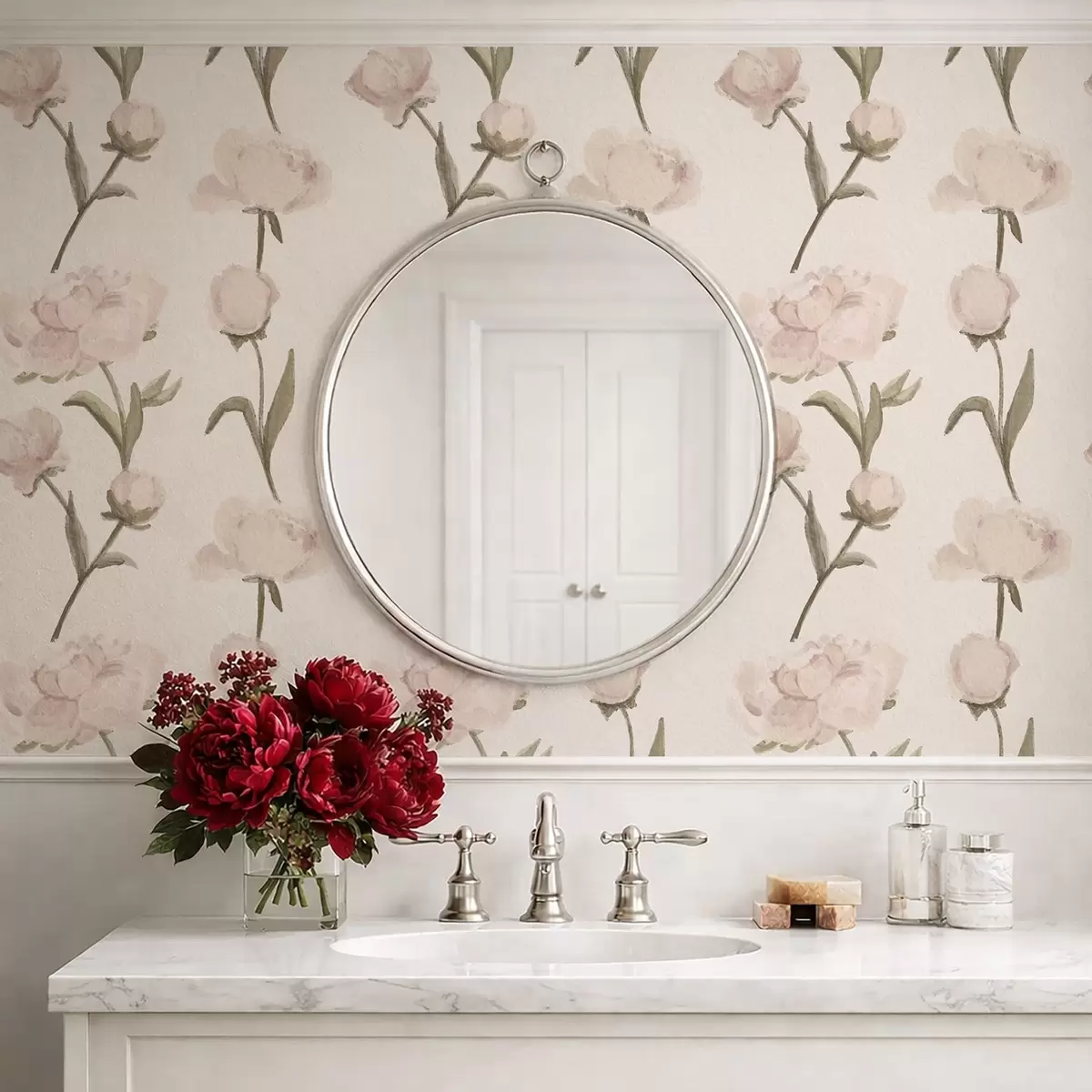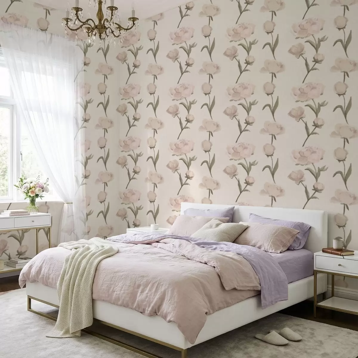 Papel tapiz Peonías de color rosa suave sobre fondo claro Nr. a01114