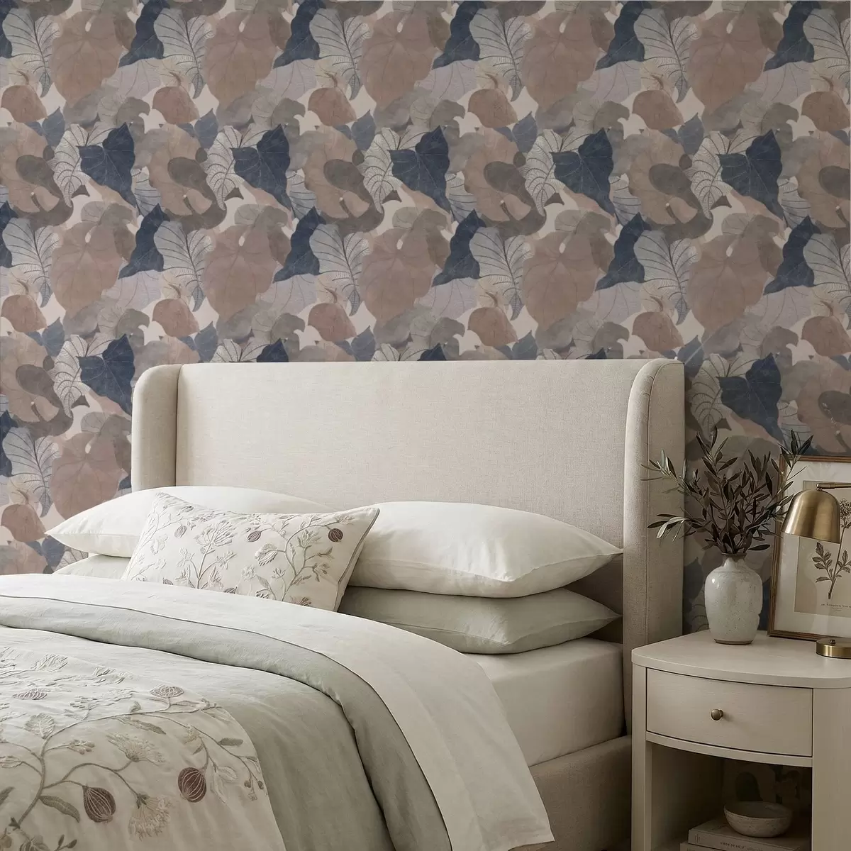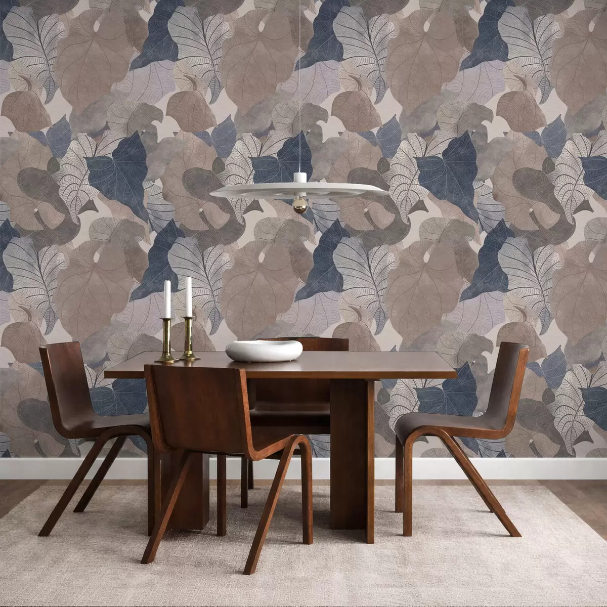 Papel tapiz Grandes hojas estilizadas en tonos pastel. Nr. a01115