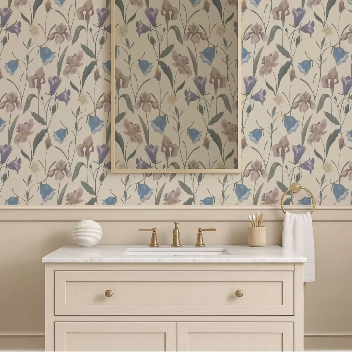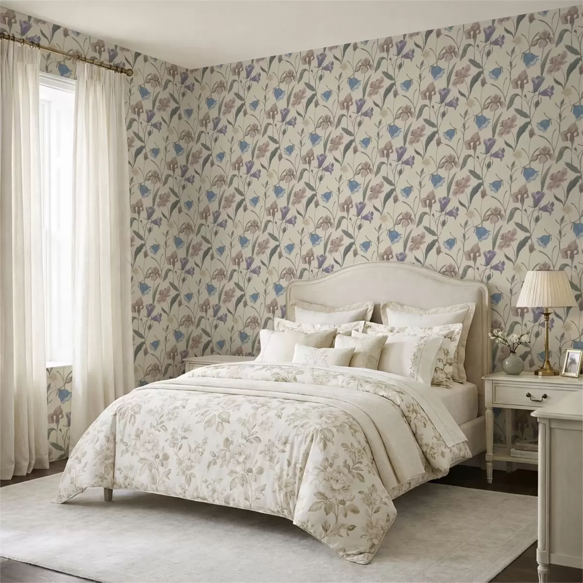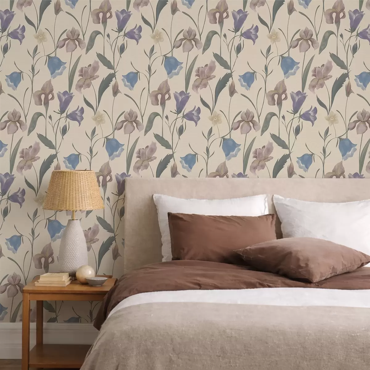 Papel tapiz Estampado floral en tonos pastel sobre fondo claro. Nr. a01118