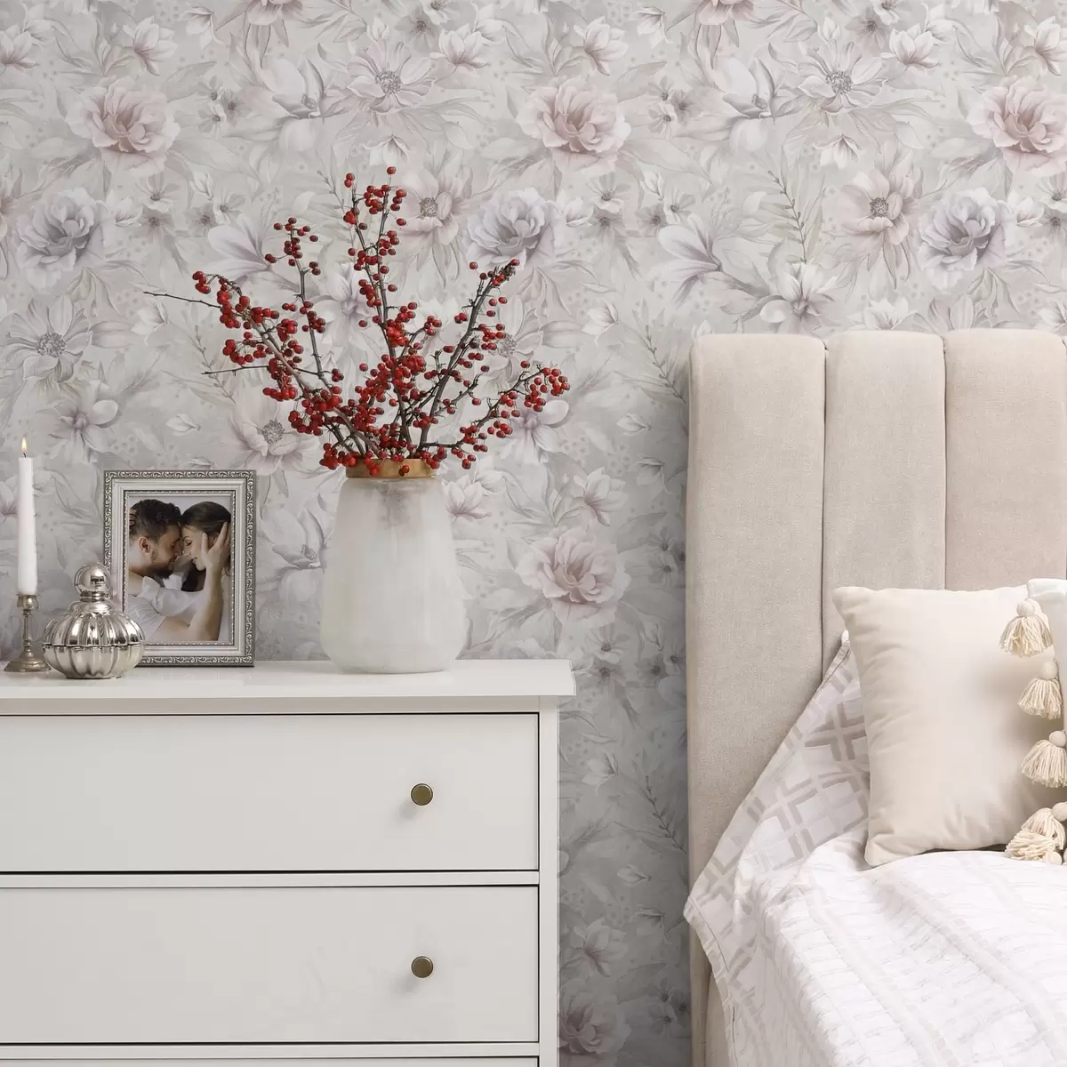 Papel tapiz Diseño ligero con flores grandes y delicadas Nr. a01133