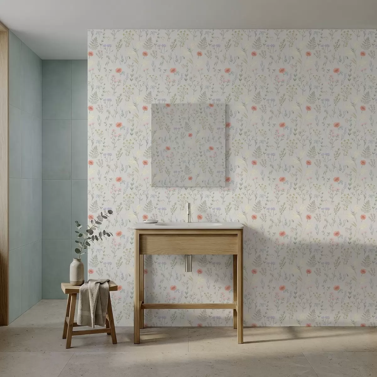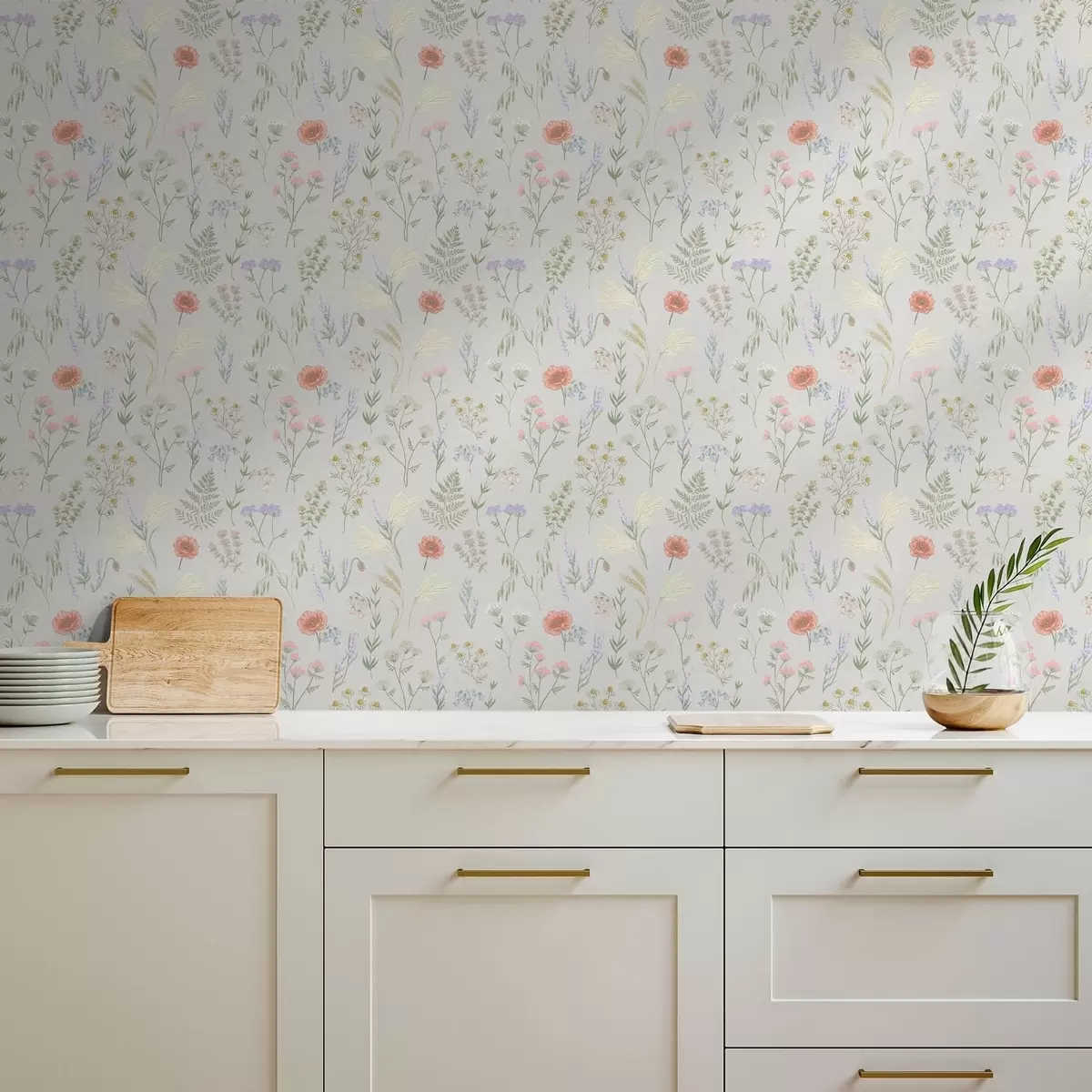 Papel tapiz Delikado estampado de flores silvestres sobre fondo claro Nr. a01152