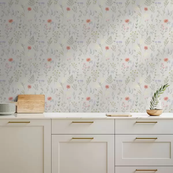 Papel tapiz Delikado estampado de flores silvestres sobre fondo claro Nr. a01152