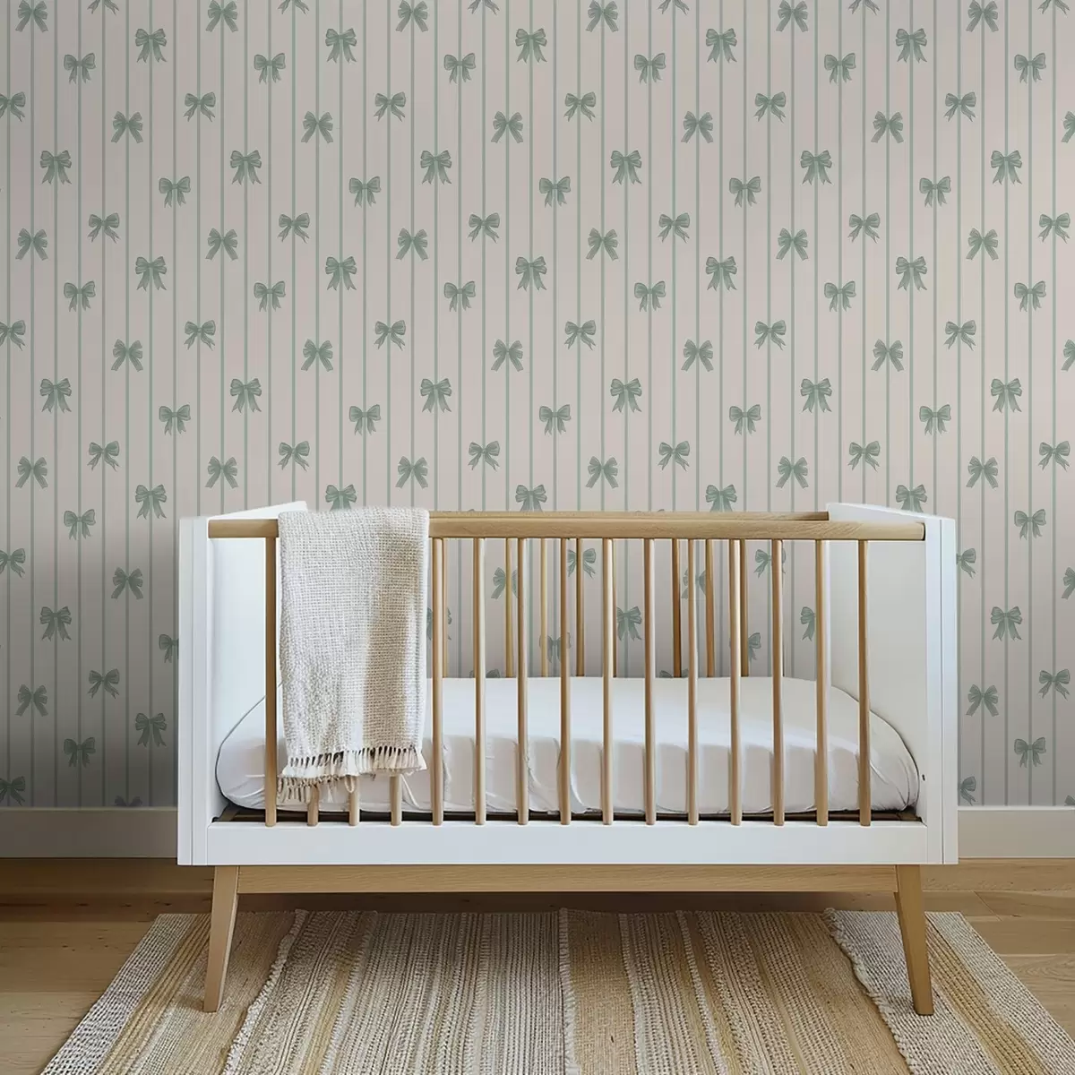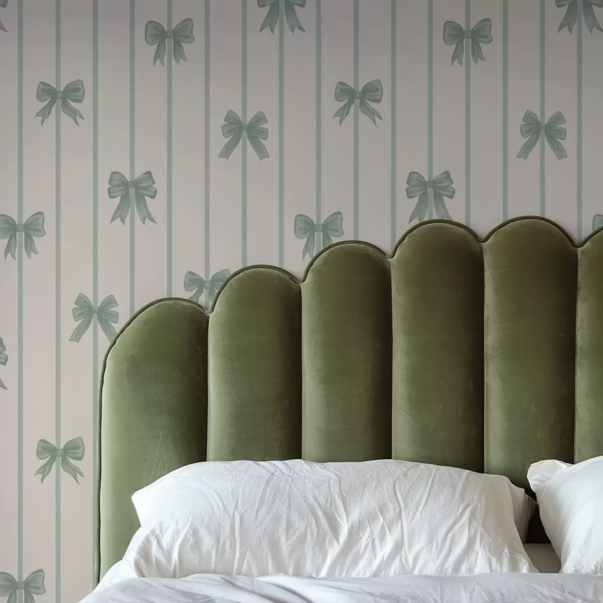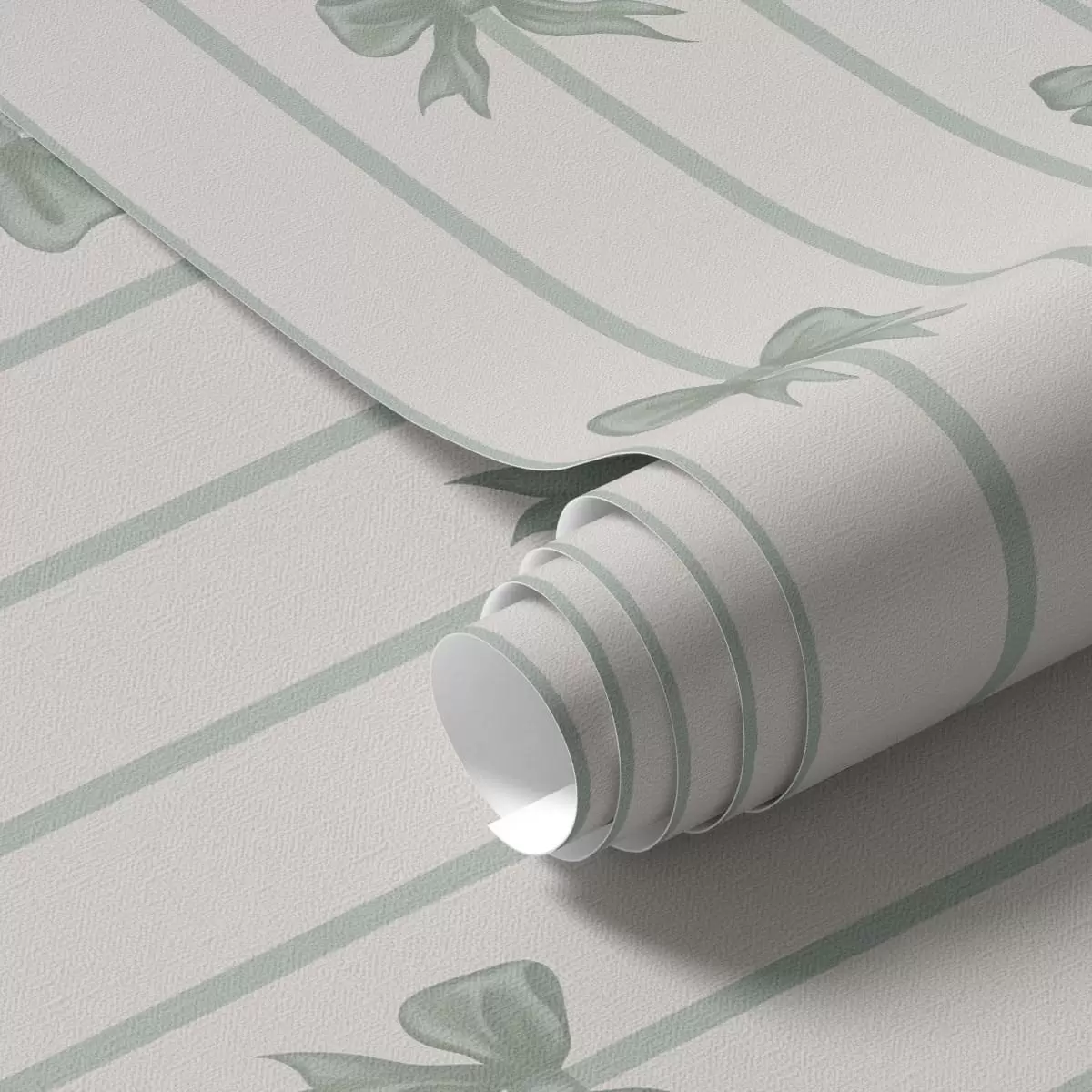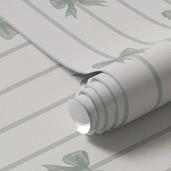 Papel tapiz Lazos verdes sobre un fondo beige a rayas Nr. a01162v1