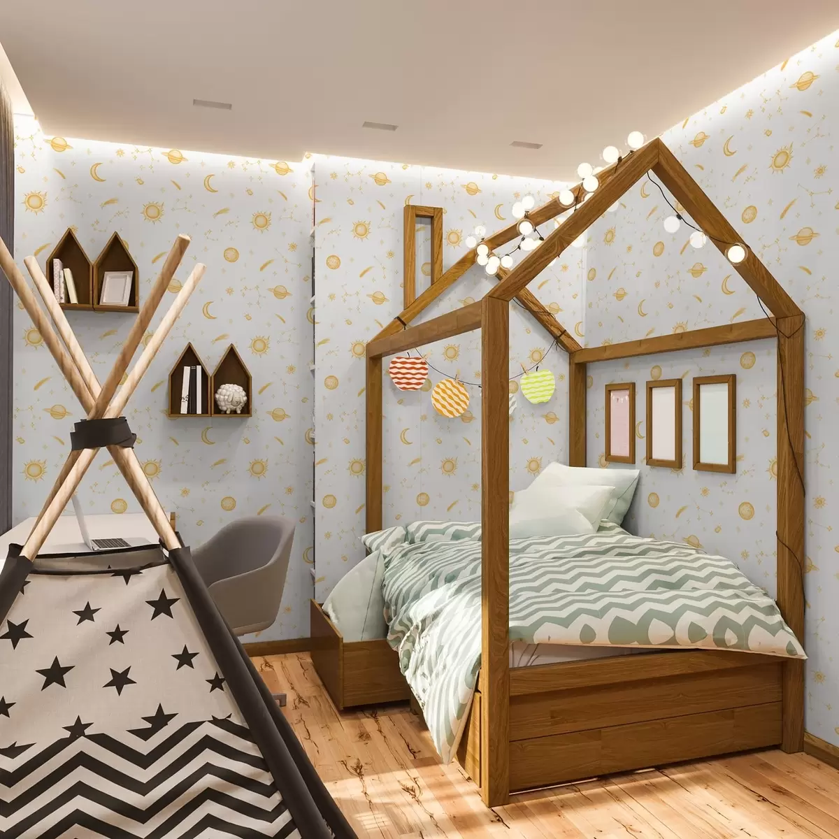 Papel tapiz Cuerpos celestes y estrellas en estilo suave Nr. a01163