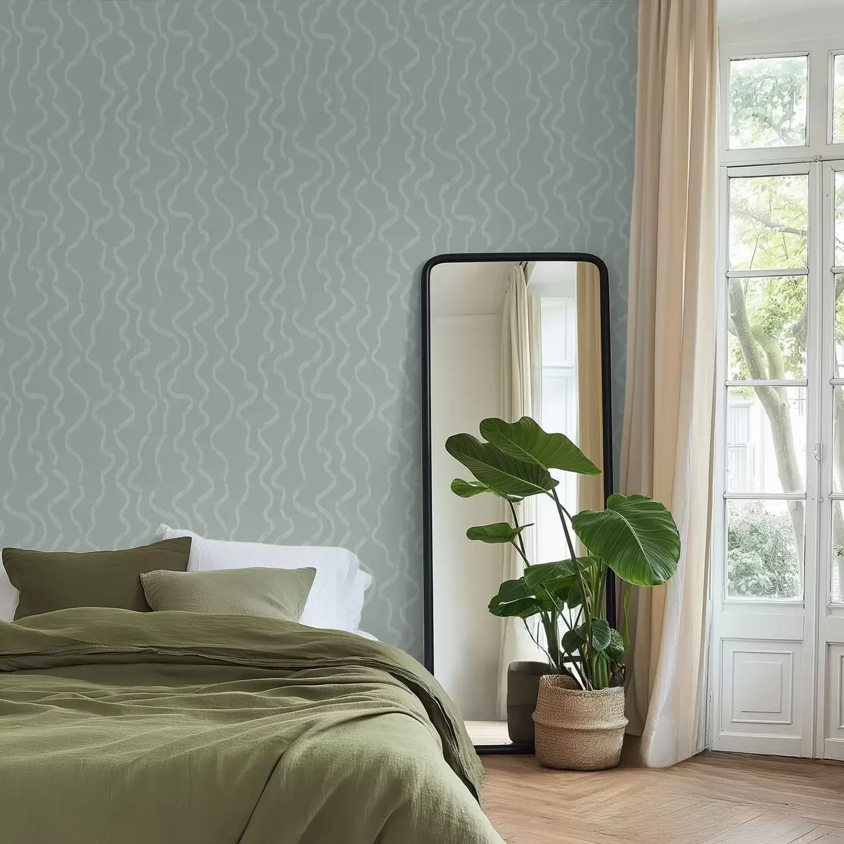 Papel tapiz Dibujo ondulado sobre fondo verde Nr. a01167v2