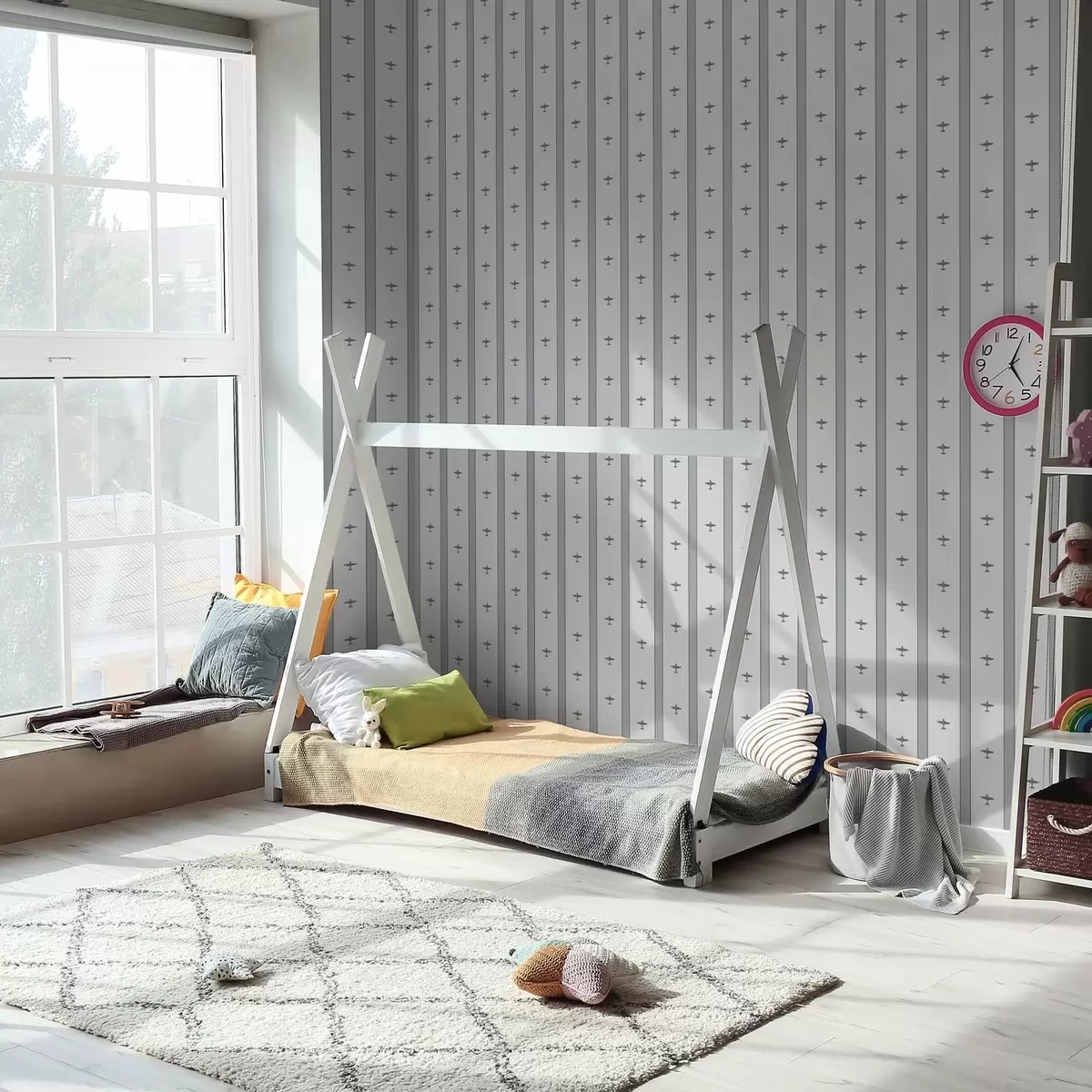 Papel tapiz Aviones pequeños a rayas sobre fondo gris Nr. a01171v1
