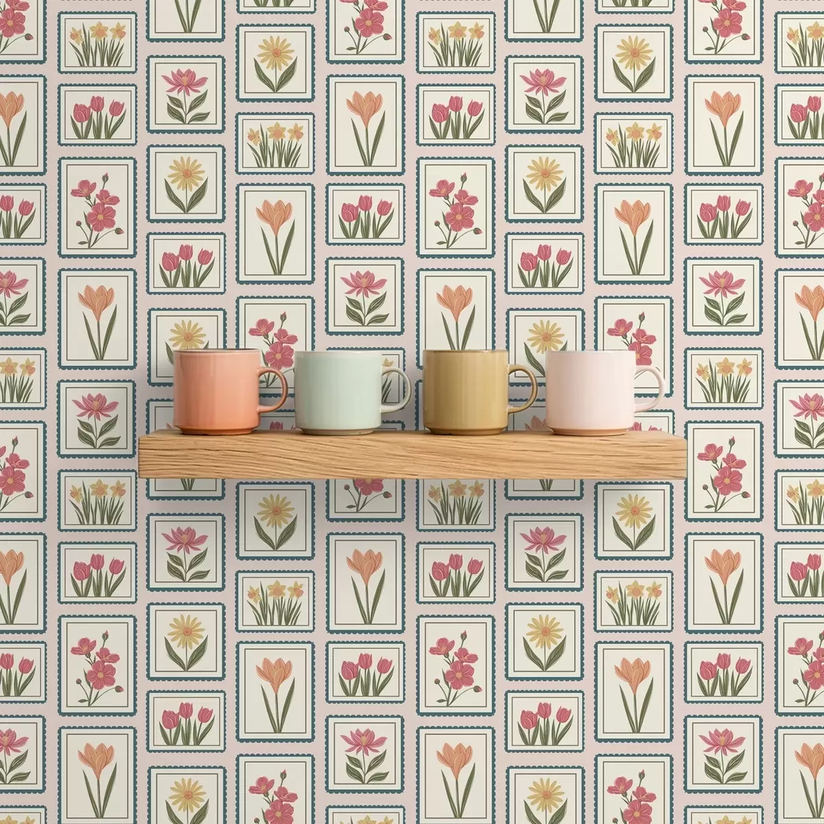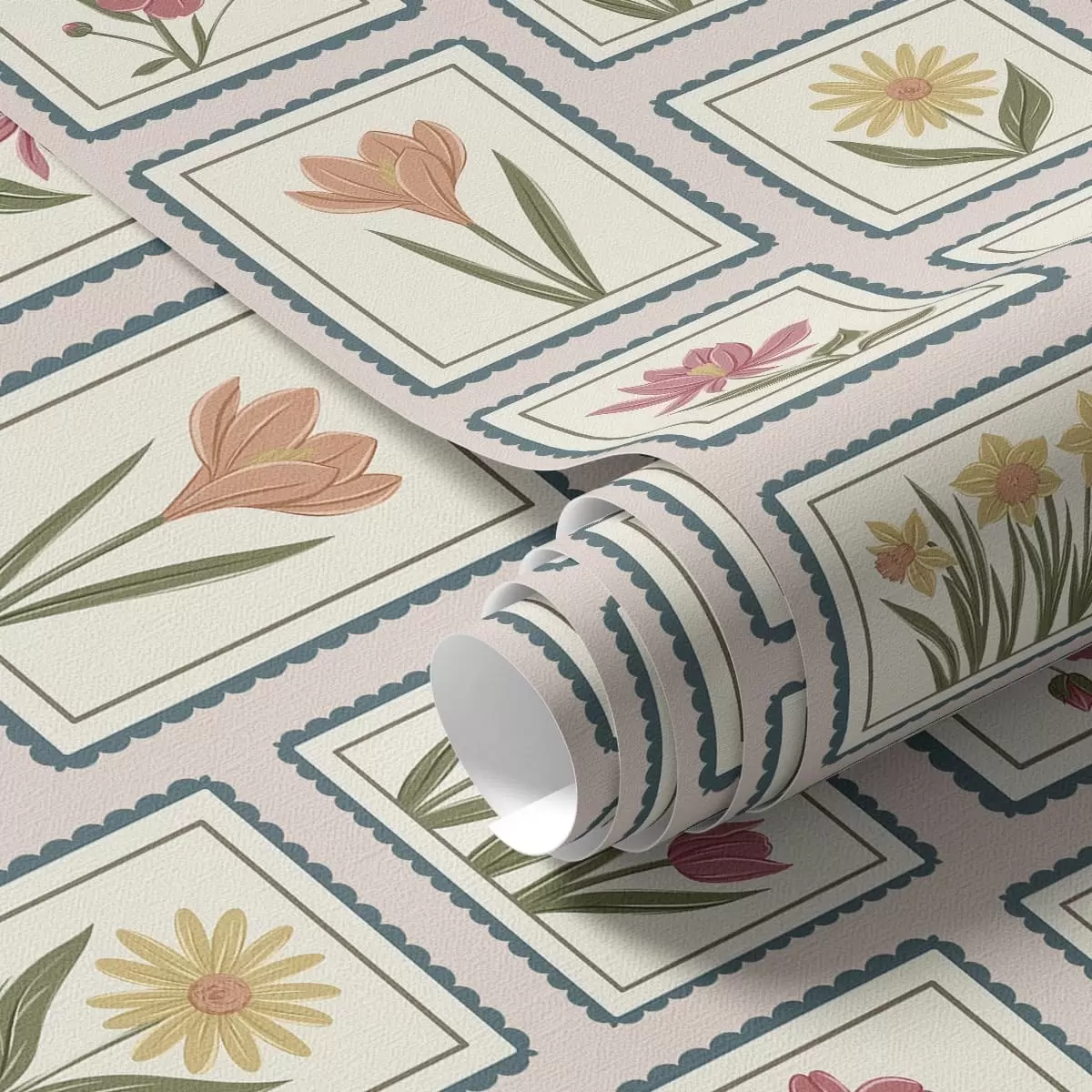 Papel tapiz Ilustraciones florales enmarcadas con bordes Nr. a01174