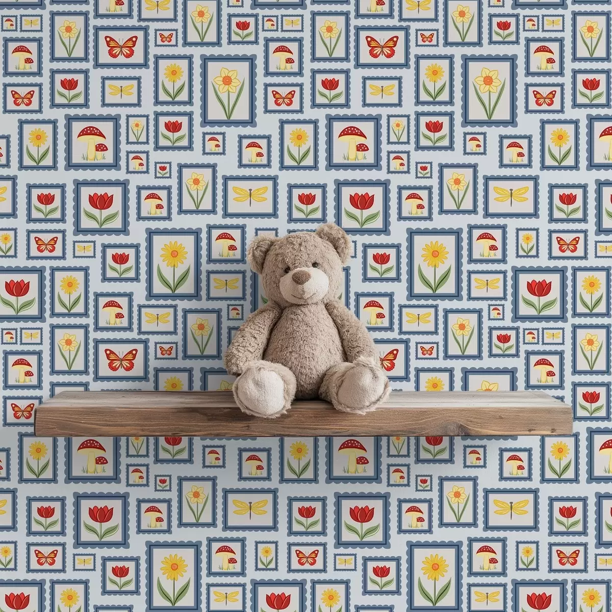 Papel tapiz Ilustraciones enmarcadas sobre fondo azul Nr. a01176