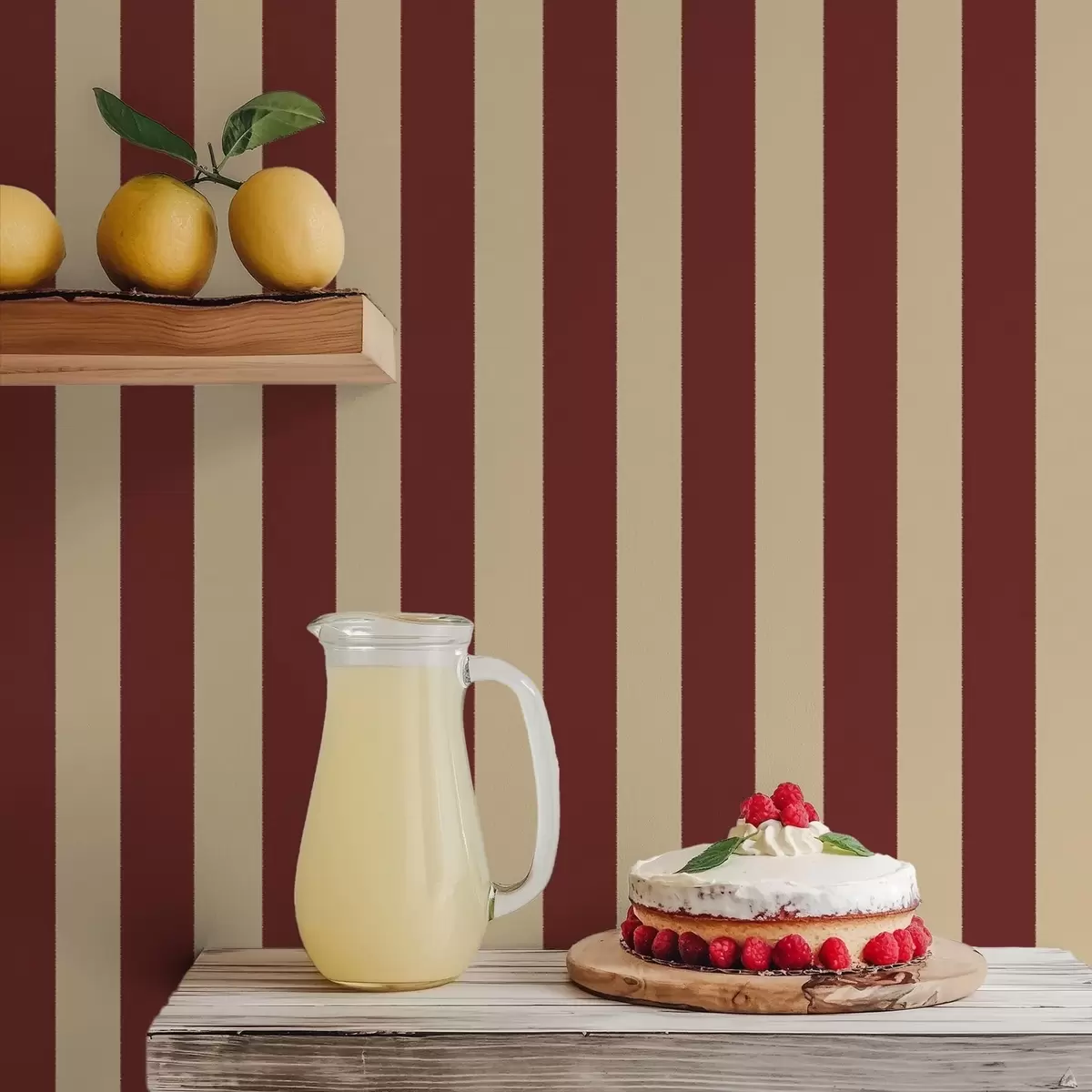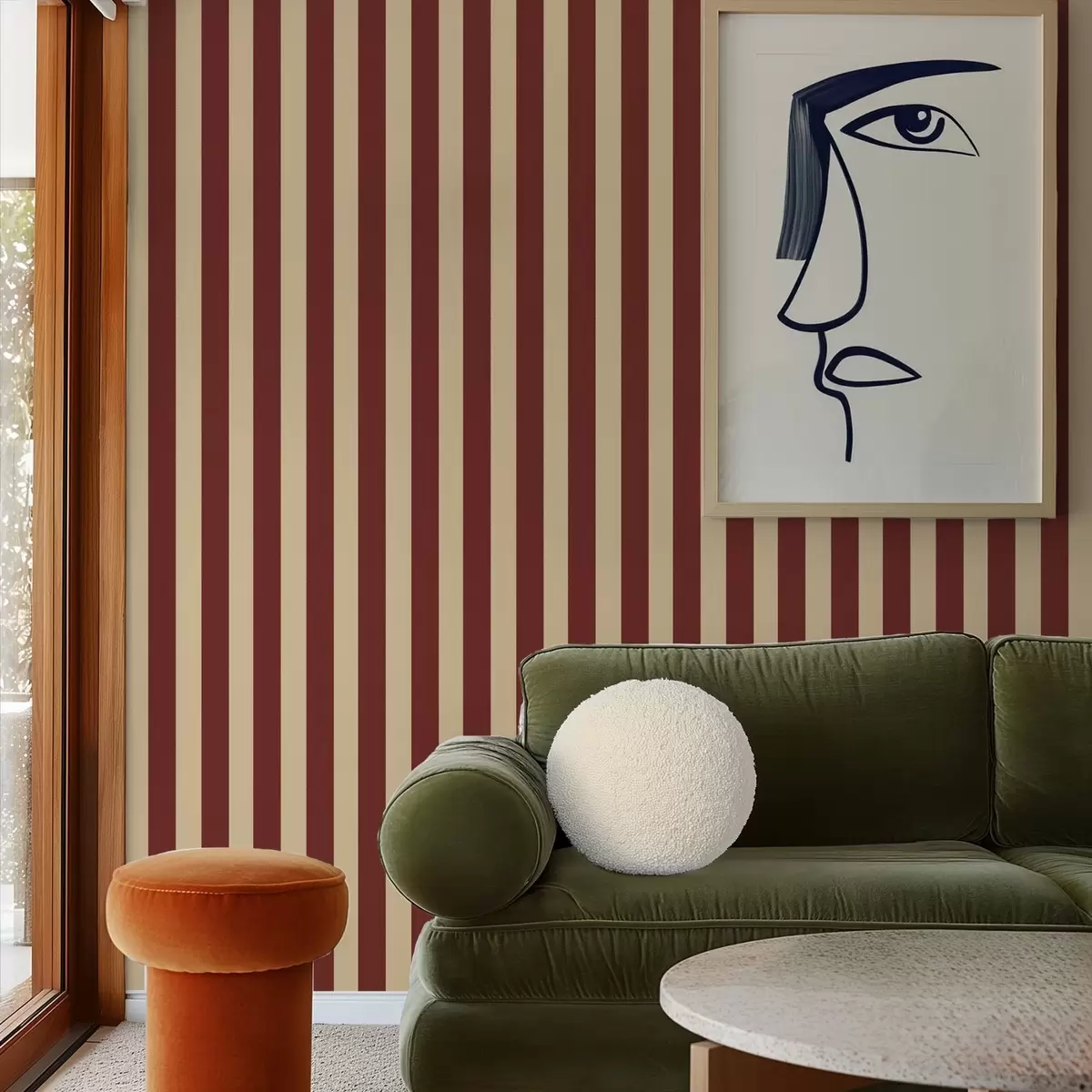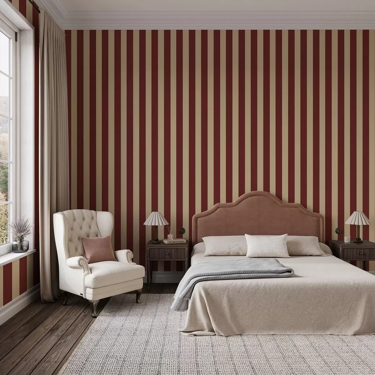Papel tapiz Rayas verticales rojas y beige Nr. a01179