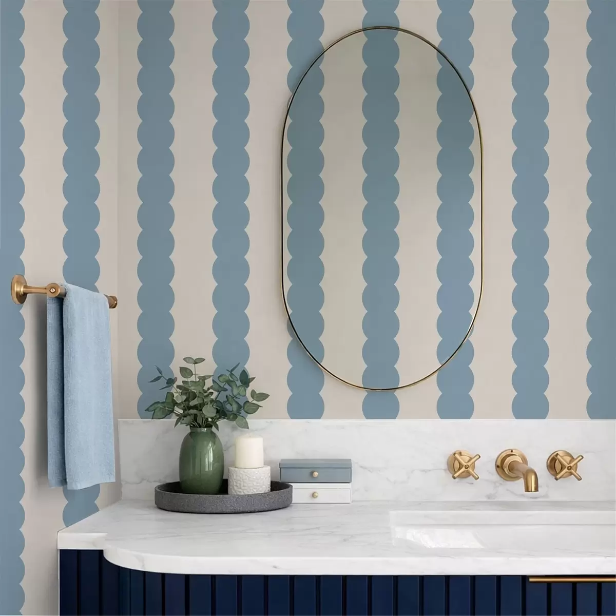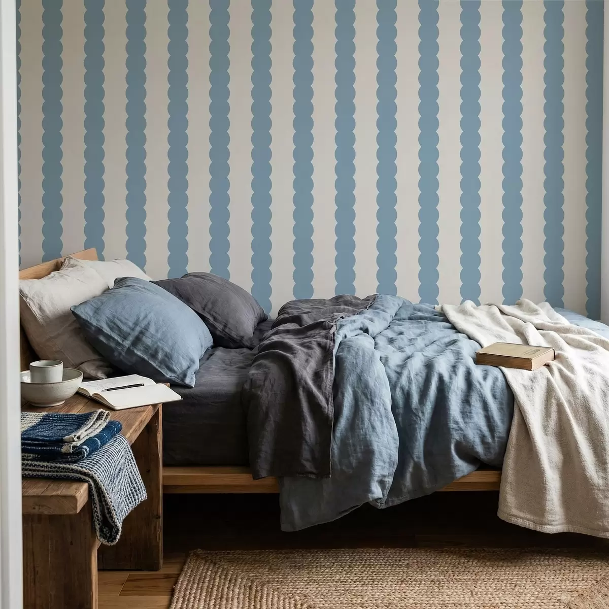Papel tapiz Rayas onduladas azules de estilo minimalista Nr. a01182